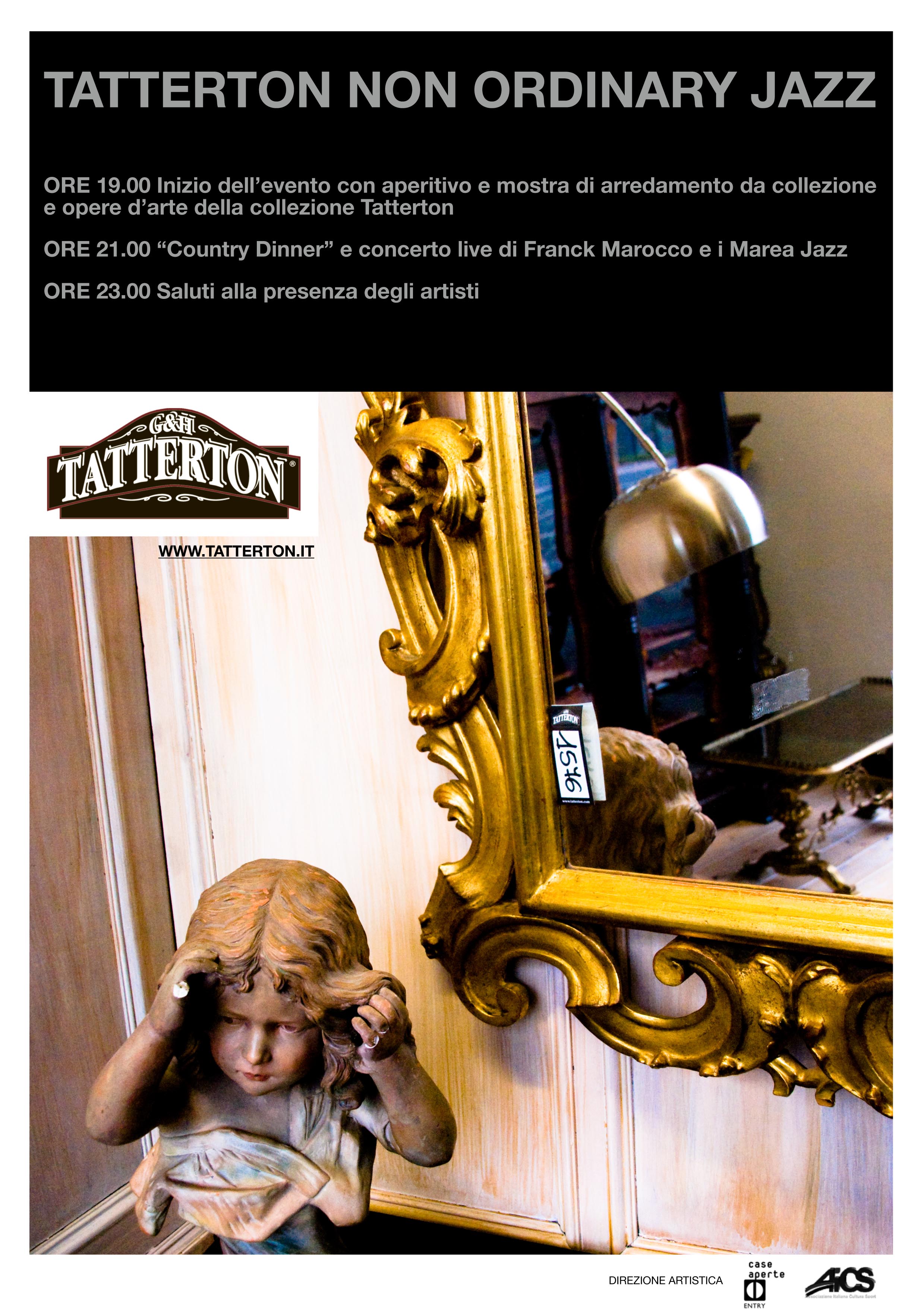 ORE 19.00 Inizio dell’evento con aperitivo e mostra di arredamento da collezione e opere d’arte della collezione Tatterton