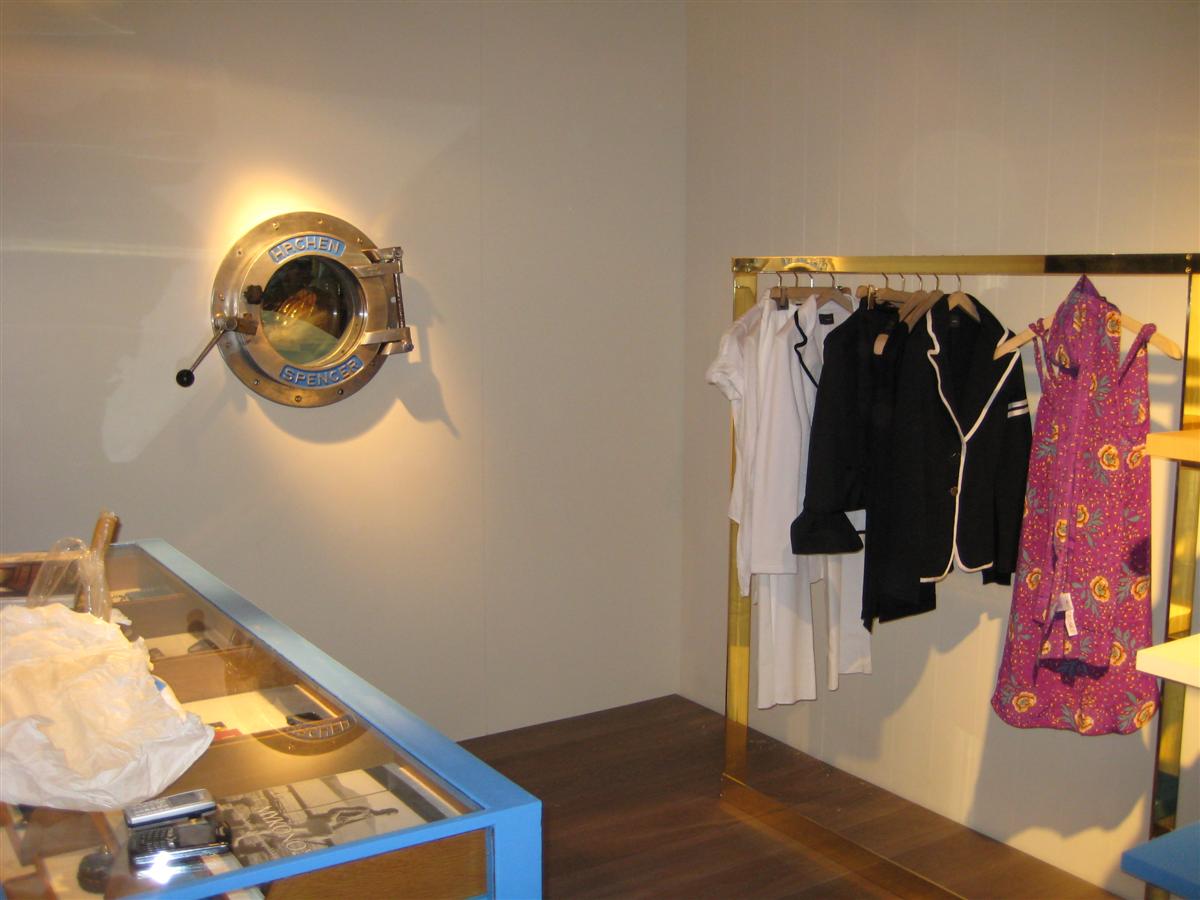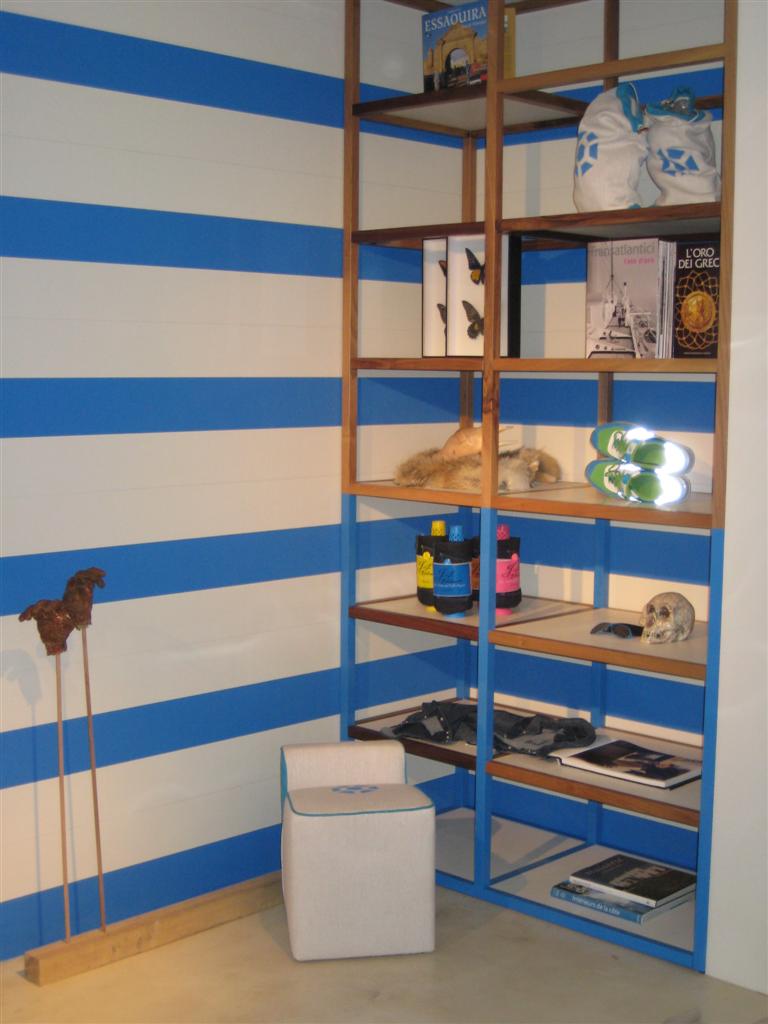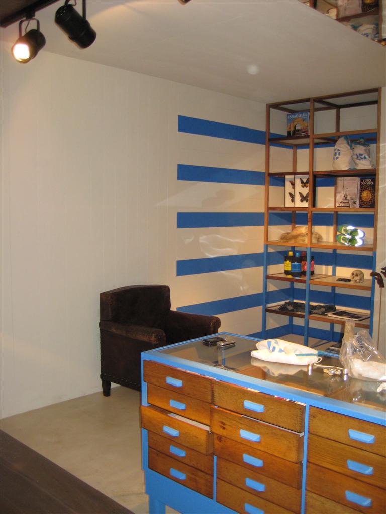 Arrediamo in collaborazione con l'arch. Costanzi il negozio Lakis di Atene. Il conter inglese, originale, si colora quindi di bianco ed azzurro, mentre i piccoli pouf con schienale vengono appositamente prodotti dagli artigiani di Tatterton con le stesse stoffe utilizzate per la linea di accessori, impreziosite dal logo del negozio.