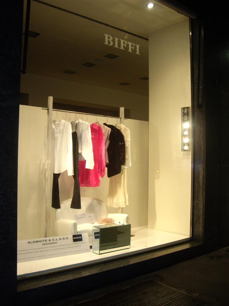 Biffi Boutique, Milano Noleggio arredi e complementi per l'allestimento delle vetrina della boutique Biffi a Milano in occasione della settimana della moda. Indietro Avanti