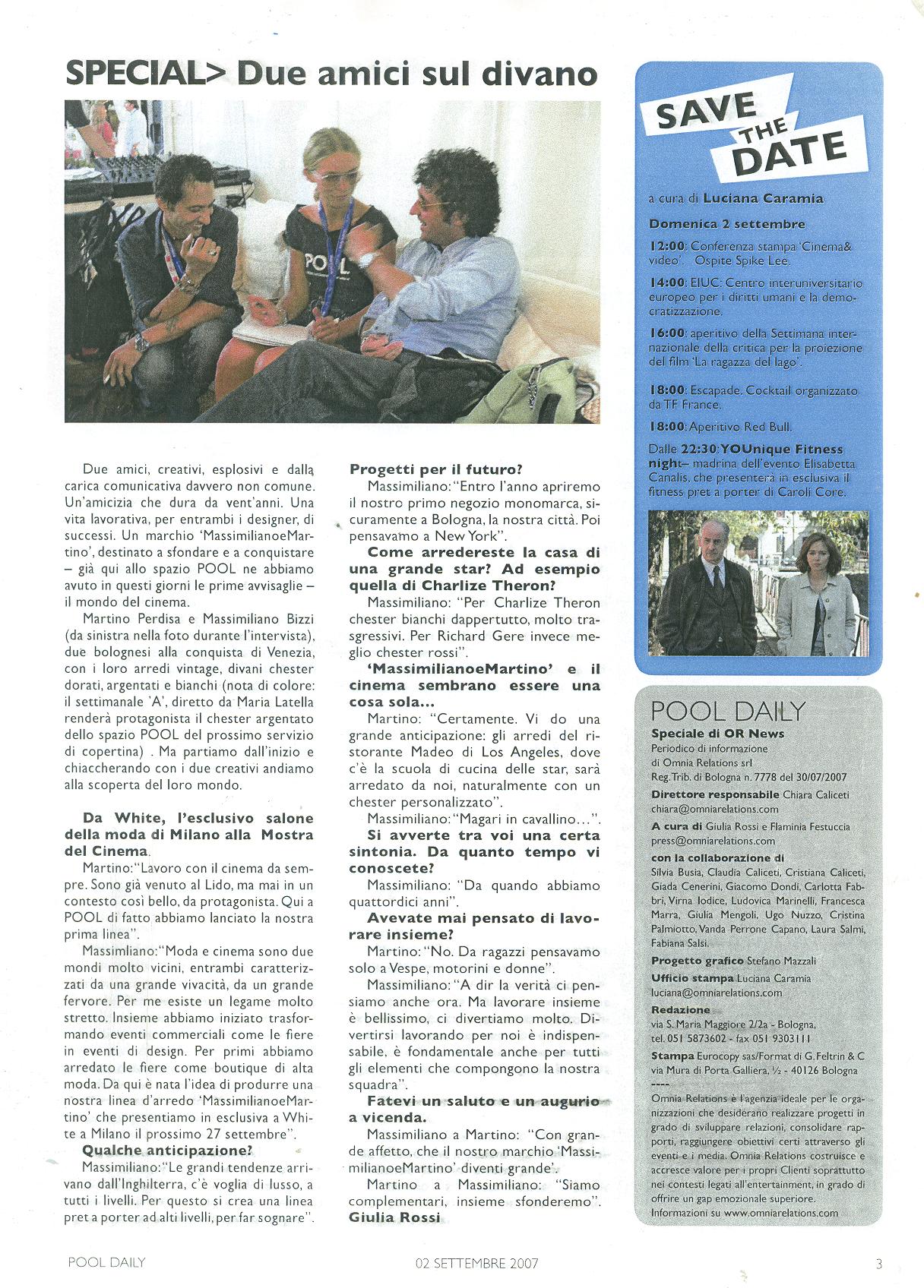 Appuntamento il 4 settembre poi per gli amanti della disco anni 70/80 che vedranno l’animazione della band dei Jo Dibrutto, famosa per le proprie performance live a stretto contatto con il pubblico. Anche in questo caso l’organizzazione e gli allestimenti sono a cura di Martino Perdisa e di Tatterton. Vero oggetto del desiderio di questo tuffo vintage sono state le parrucche sgargianti offerte agli ospiti, letteralmente andate a ruba a inizio serata, rendendo l’atmosfera della festa ancora più cool.