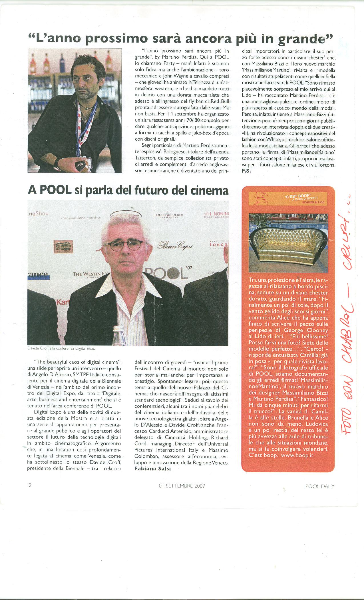 In occasione della 64° edizione del festival del cinema adi Venezia, in scena dal 29 agosto all'8 settembre, Tatterton si occupa dell'allestimento della nuova area Pool, che farà dello spazio attorno alla piscina dell’Hotel Westin Excelsior il cuore pulsante del Festival e alla quale si potrà accedere solo grazie agli esclusivi badge dotati di codici personalizzati.
