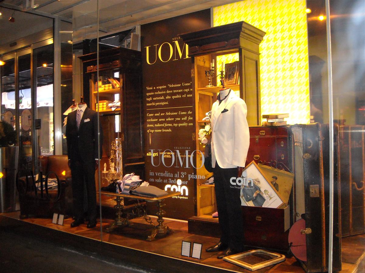 Coin vetrine, Milano 2009 Noleggio arredi e complementi per l'allestimento delle vetrina Coin a Milano piazza 5 giornate. Indietro Avanti