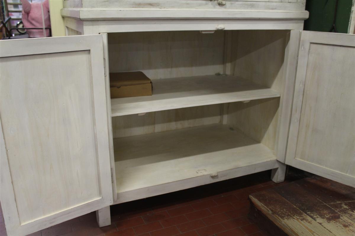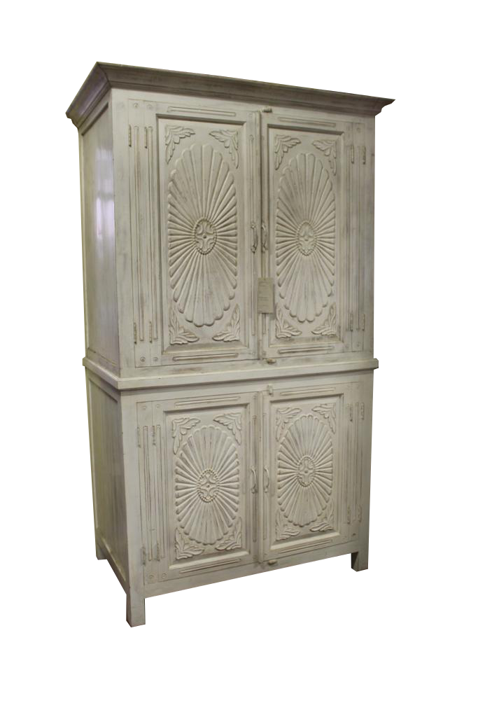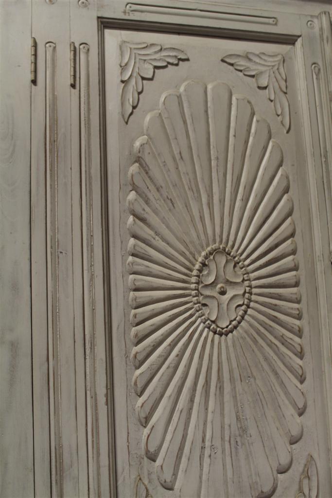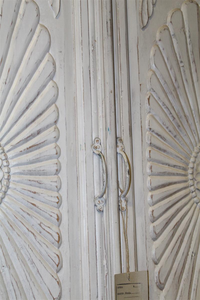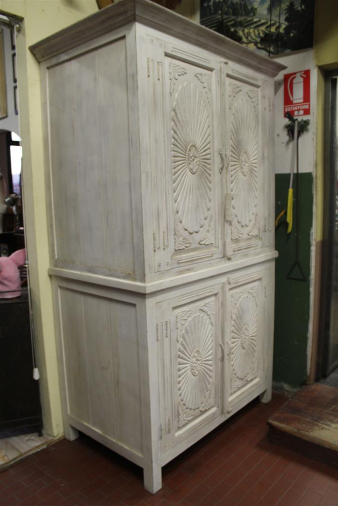 Armadio grande in due corpi bianco con decori in stile provenzale.