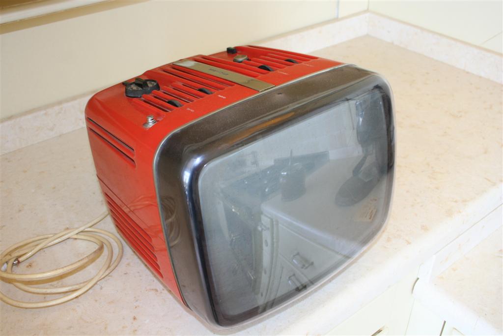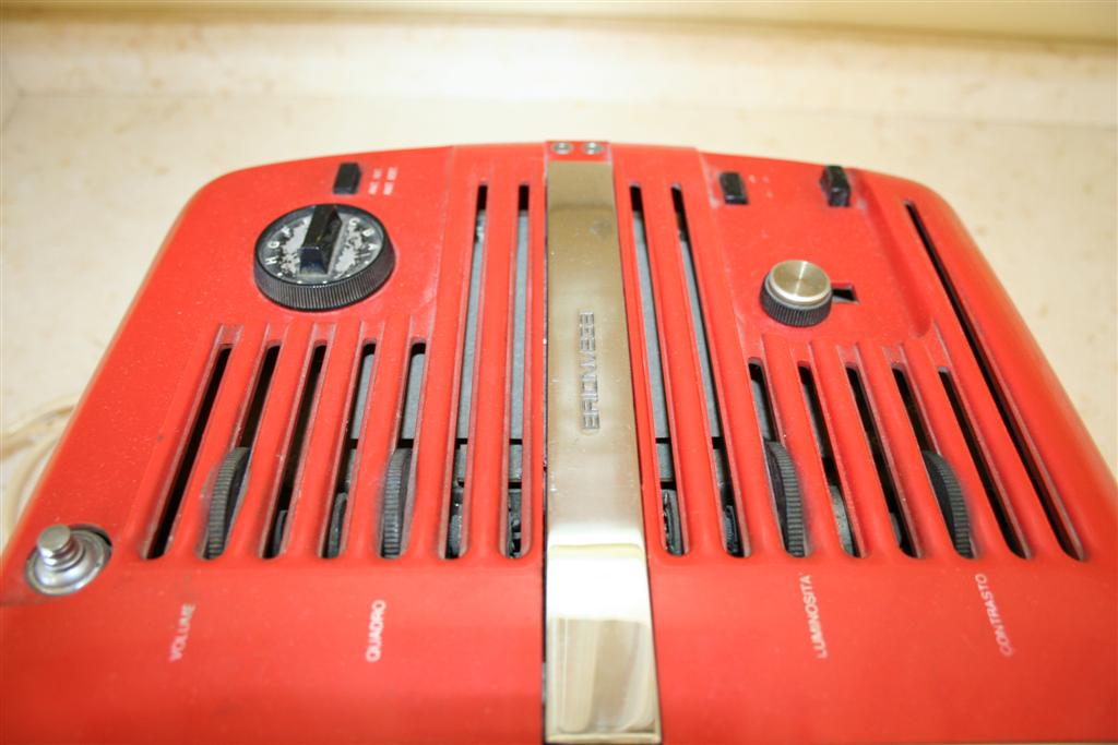 Televisore portatile vintage a 12 pollici, marchio Brionvega, color arancio. Originale anni '70.