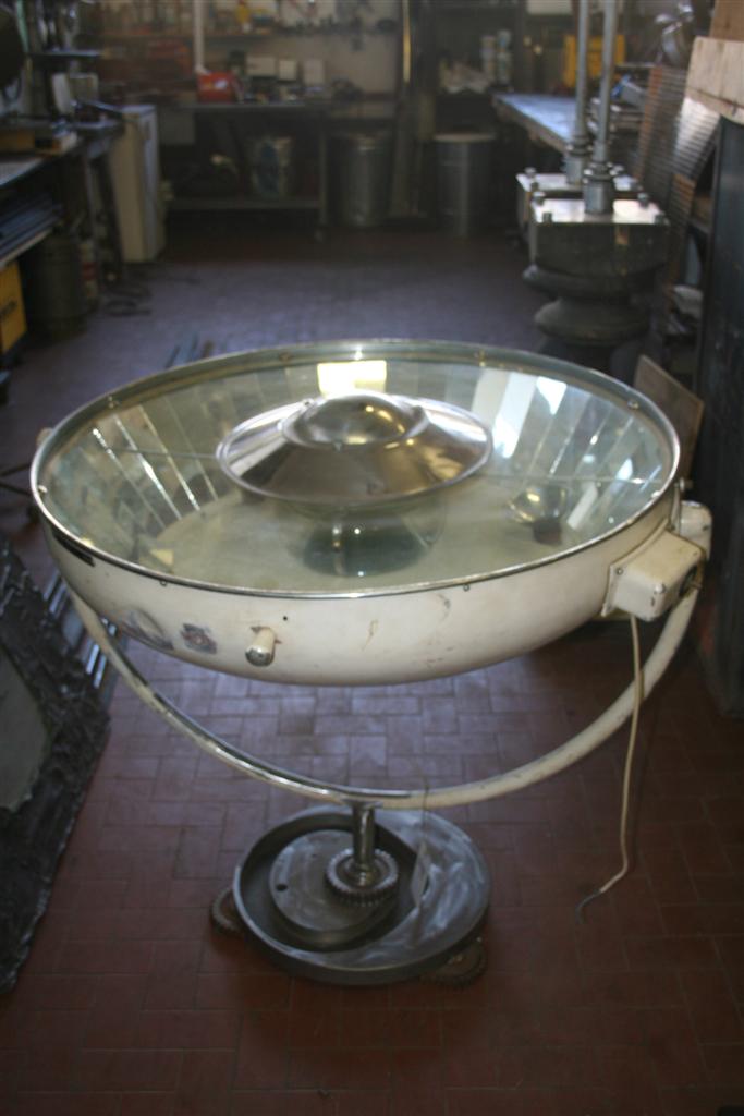 Coffeetable creato con una vecchie lampada da sala operatoria.