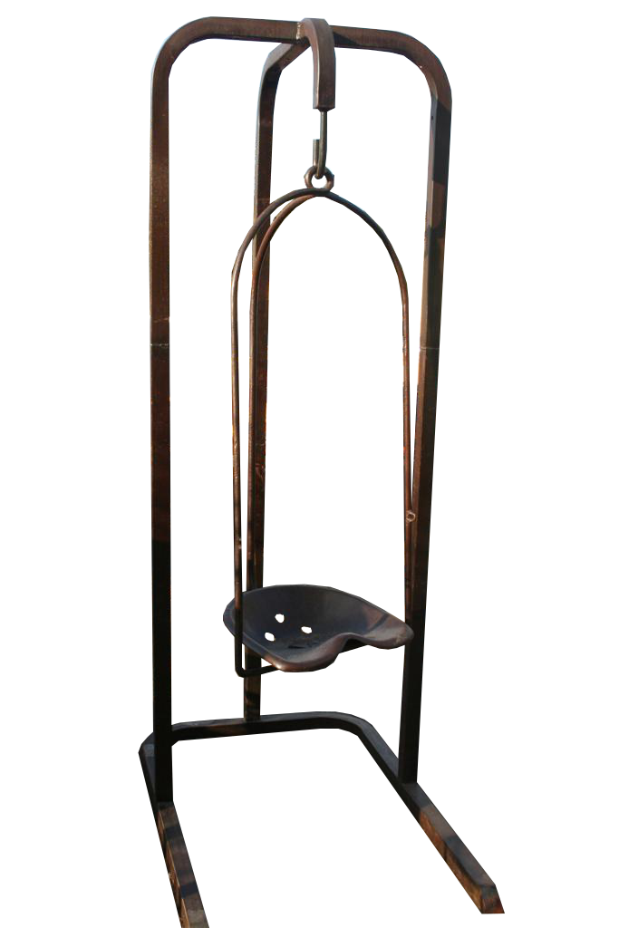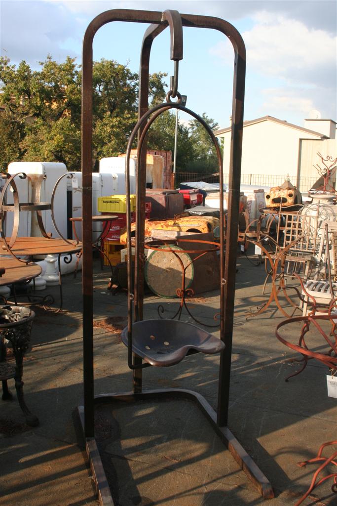 Altalena a dondolo in ferro, creata con il vecchio sedile di un trattore.