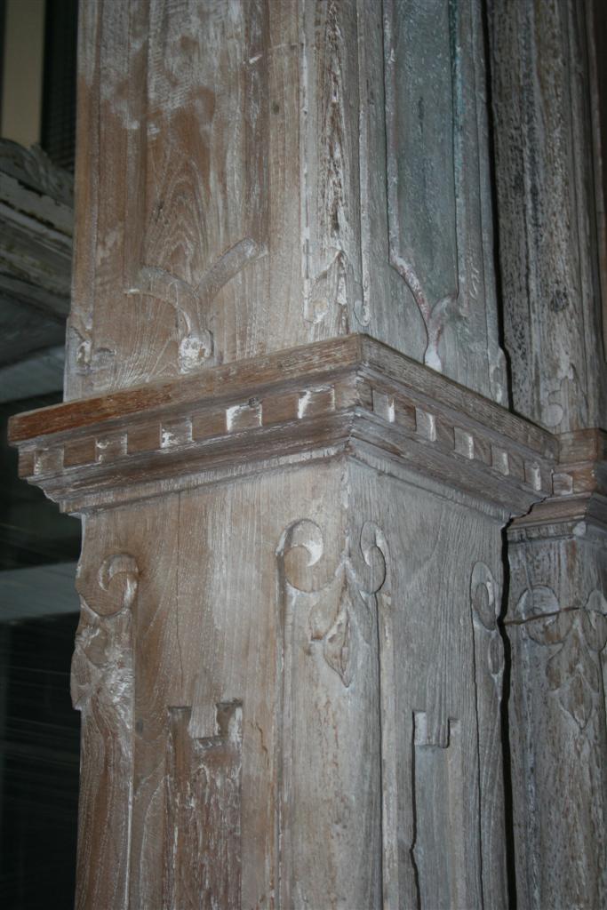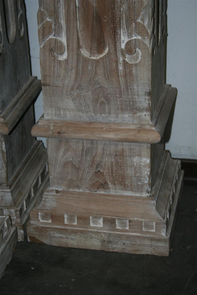 G&H Tatterton Best antique store Colonna indonesiana in legno di teak massello sbiancate, con decori ad intarsio.