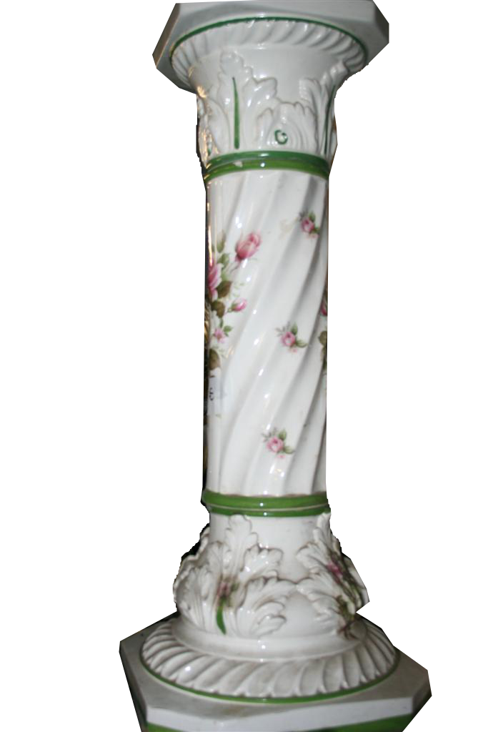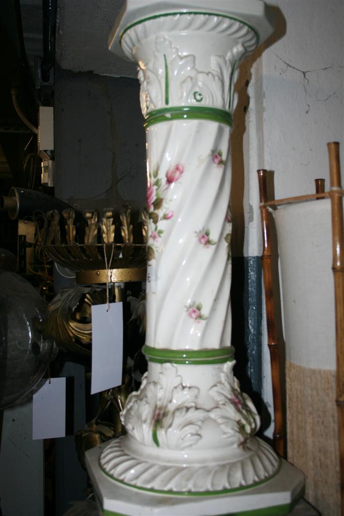 Colonnina in ceramica smaltata con decori floreali, dipinta a mano. Il piano di appoggio misura 22 x 22 cm.