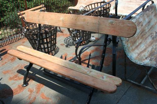 Panchina francese con struttura in ghisa laccata nera e doghe in legno.