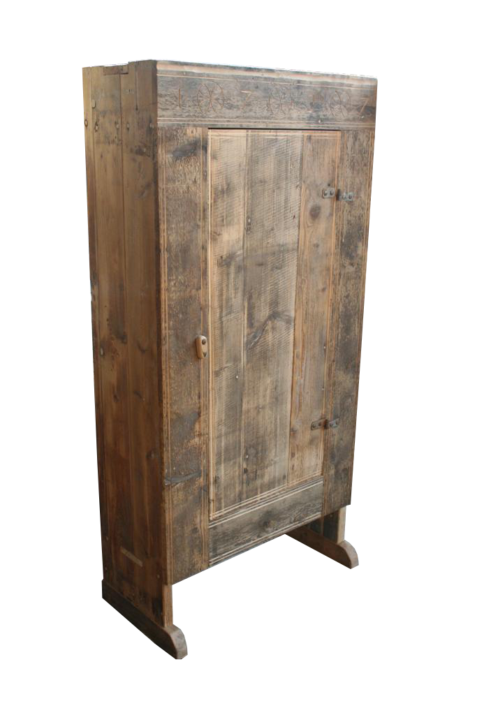 G&H Tatterton Best antique store Armadio ad anta singola con intarsi, creato con le assi di un vecchio pavimento dell'800 in abete.
