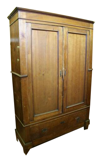 Armadio rustico in legno dolce, a due ante, con cassetto.
