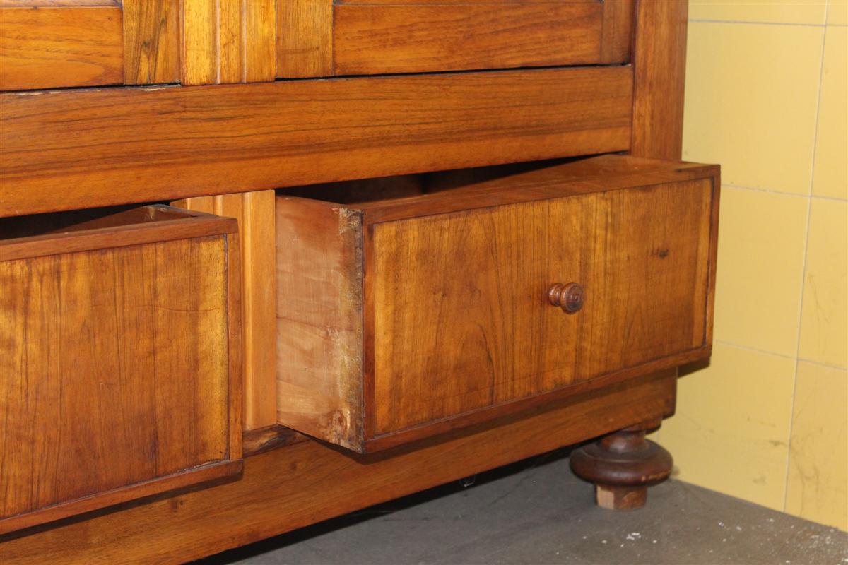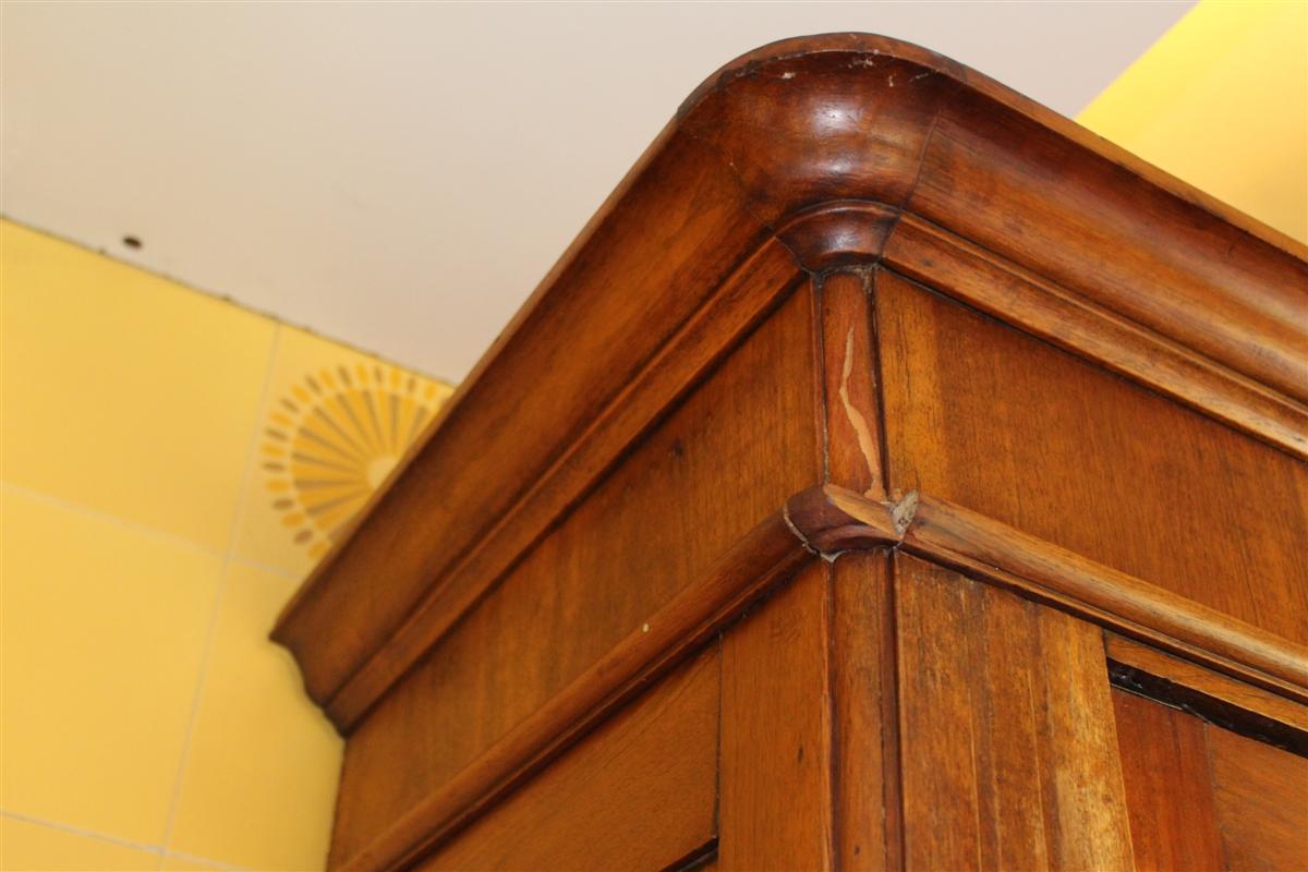 G&H Tatterton Best antique store Armadio rustico in noce impiallacciato a tre ante, con vetrina nella parte centrale. Dispone di una barra lunga appenderia e di due cassetti alla base.