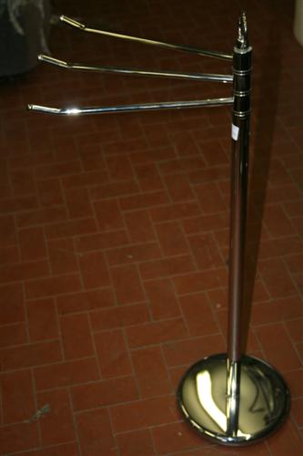 Portasciugamani vintage a stelo, in acciaio cromato, a tre braccia, anni '70.