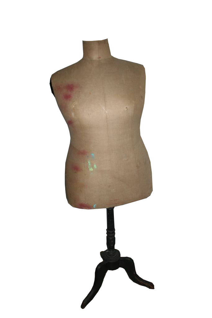 G&H Tatterton Best antique store Busto sartoriale in stoffa Stockman da donna con basein rovere, taglia 60.