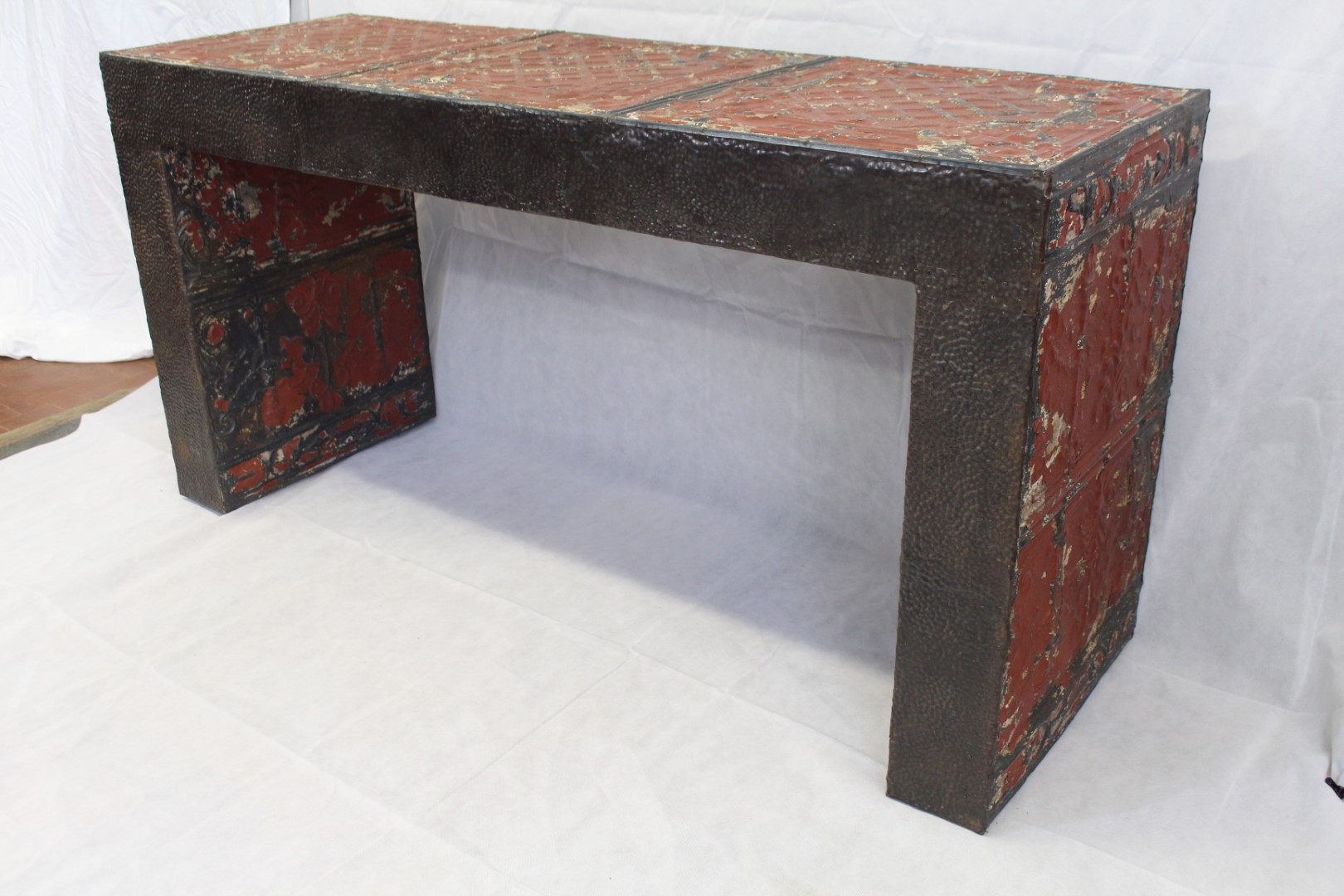 G&H Tatterton Best antique store Consolle rivestita in zinco decorato.
