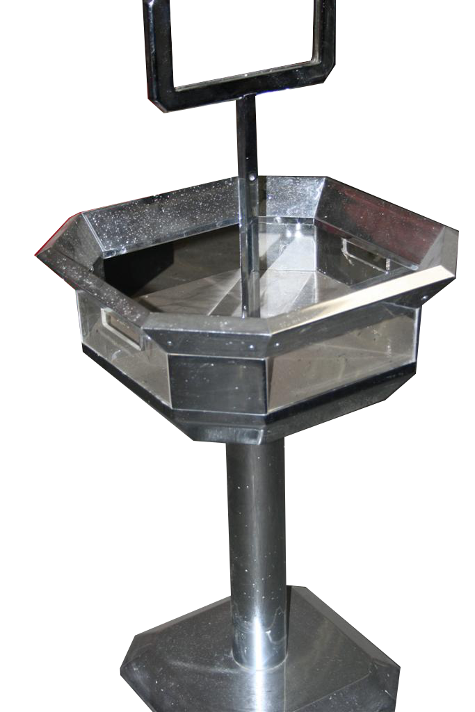 Espositore cromato da centro, provenente da una vecchia profumeria americana.