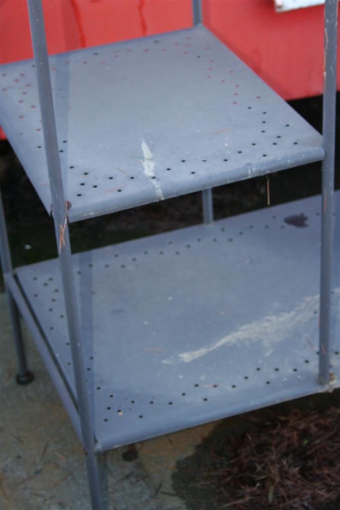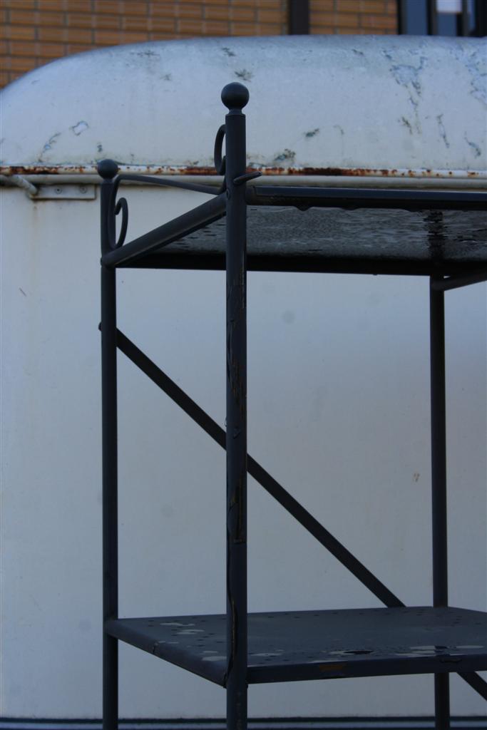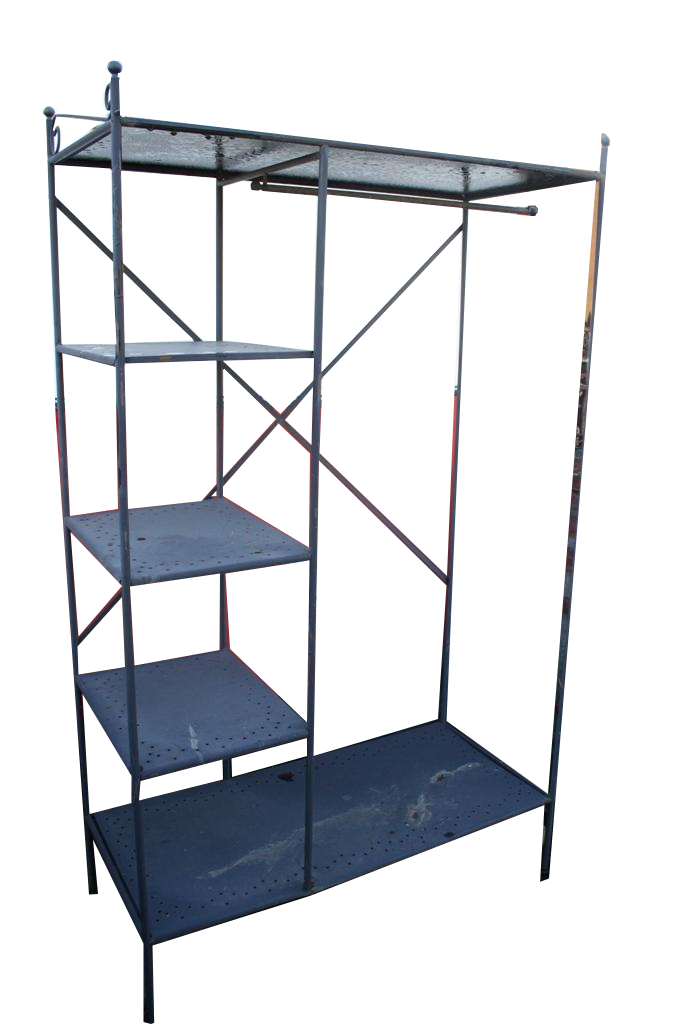Etagere in ferro con mensole e barra appendiabiti. Di nuova produzione.