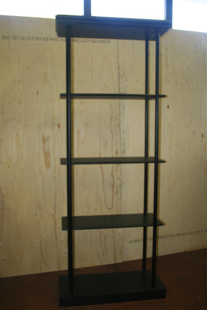 G&H Tatterton Best antique store Etagere espositiva da negozio, in ferro e legno di rovere impiallacciato, laccata nera.