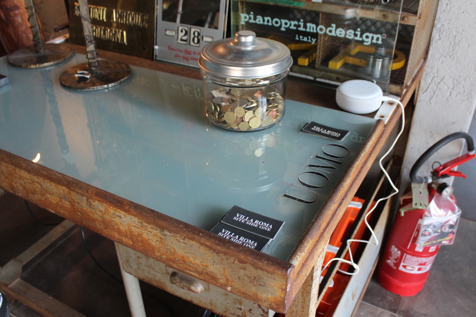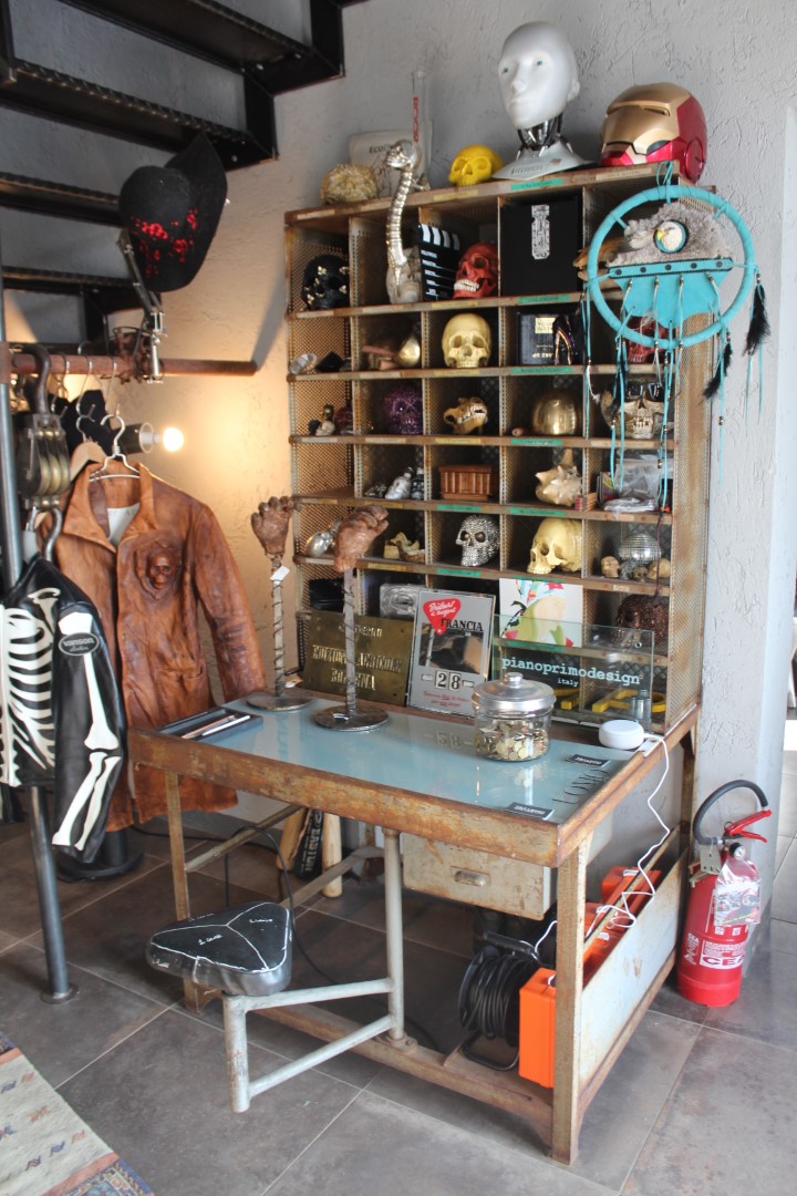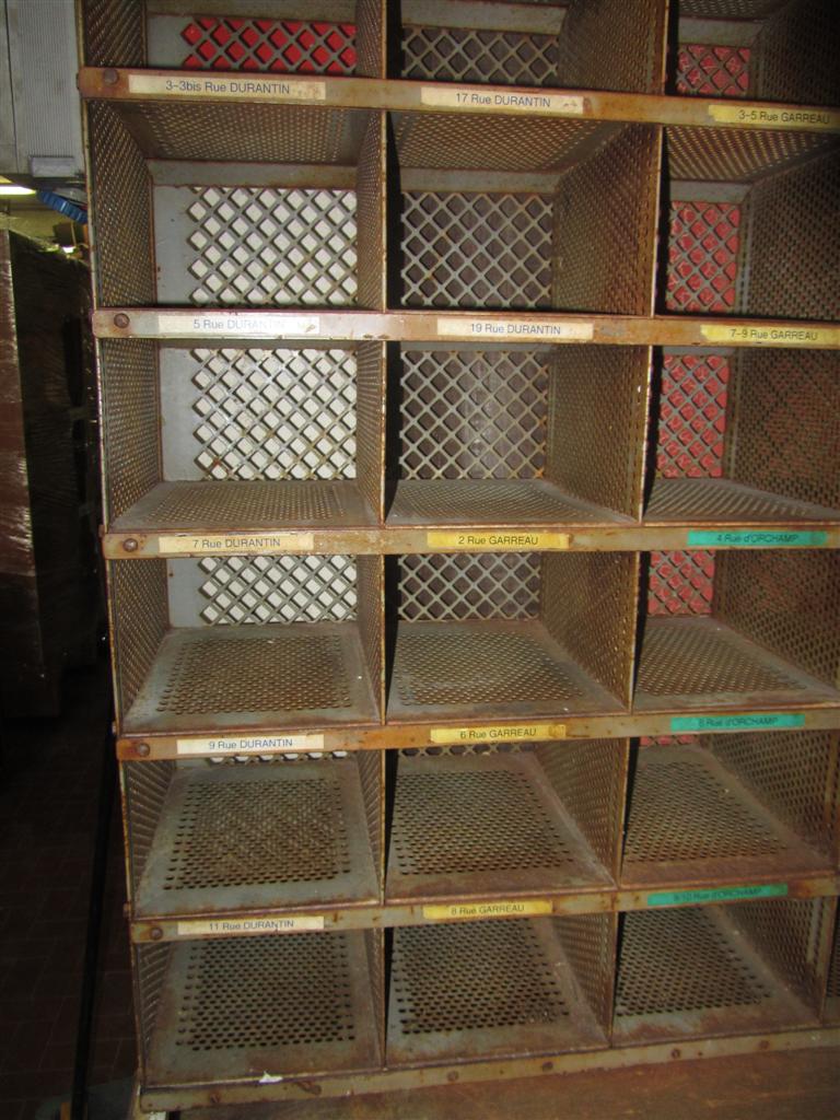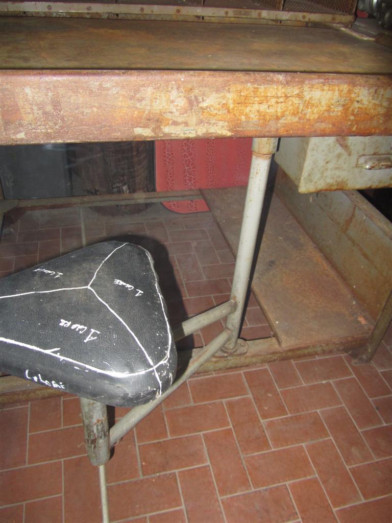 G&H Tatterton Best antique store Mobile scrittoio francese in ferro con alzata portalettere e sgabellino estraibile rivestito in pelle. Proveniente da un vecchio ufficio postale provenzale.