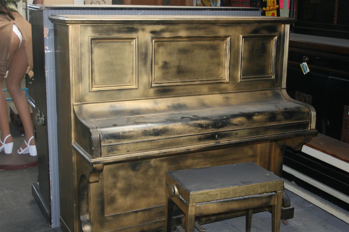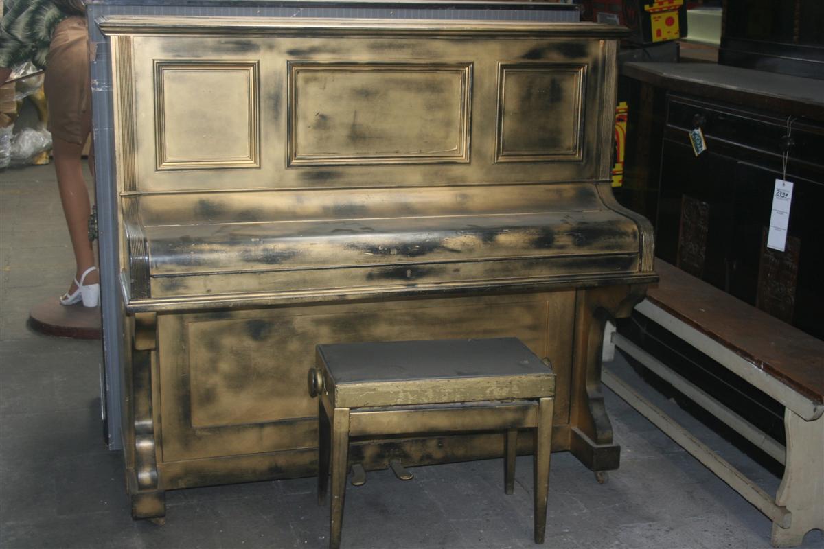 Pianoforte verticale a muro con sgabello regolabile. Struttura in noce laccato nero.