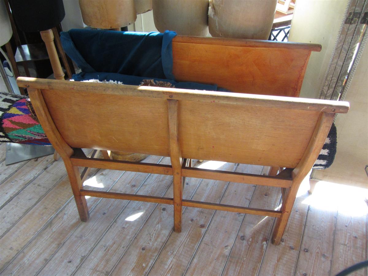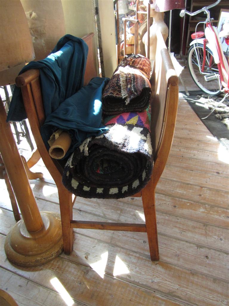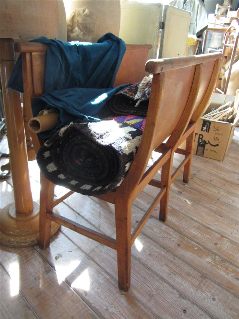 Espositore per stoffa portarotoli vintage, in rovere e compensato, proveniente da una vecchia merceria.