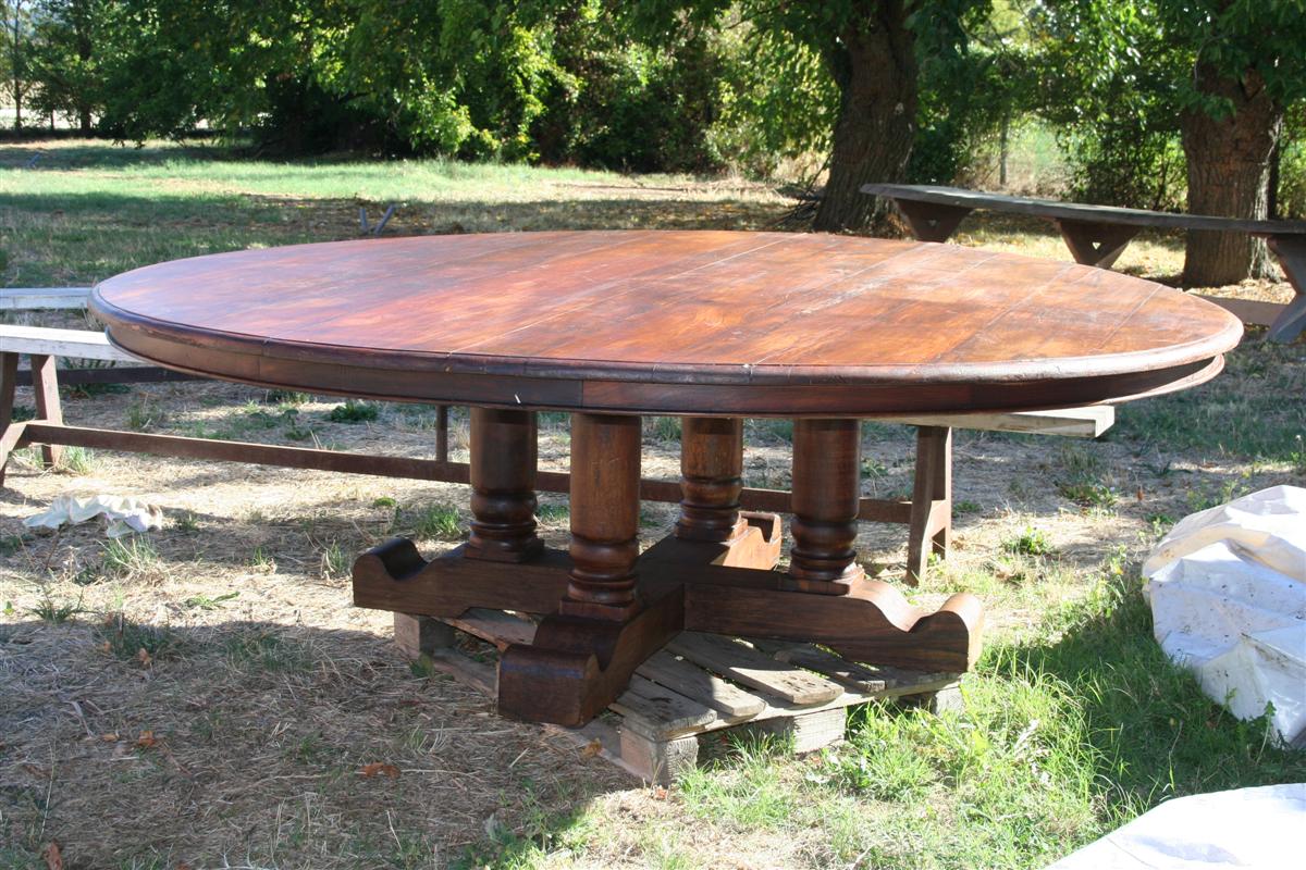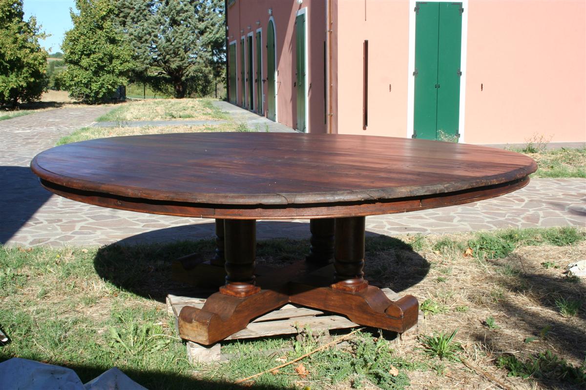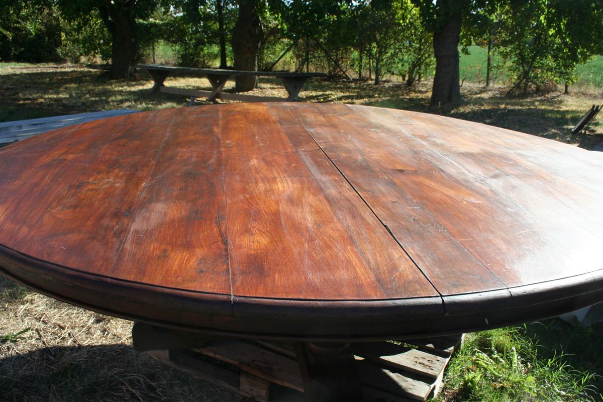 Tavolo da riunione rotondo in legno di teak, diametro 3 metri.