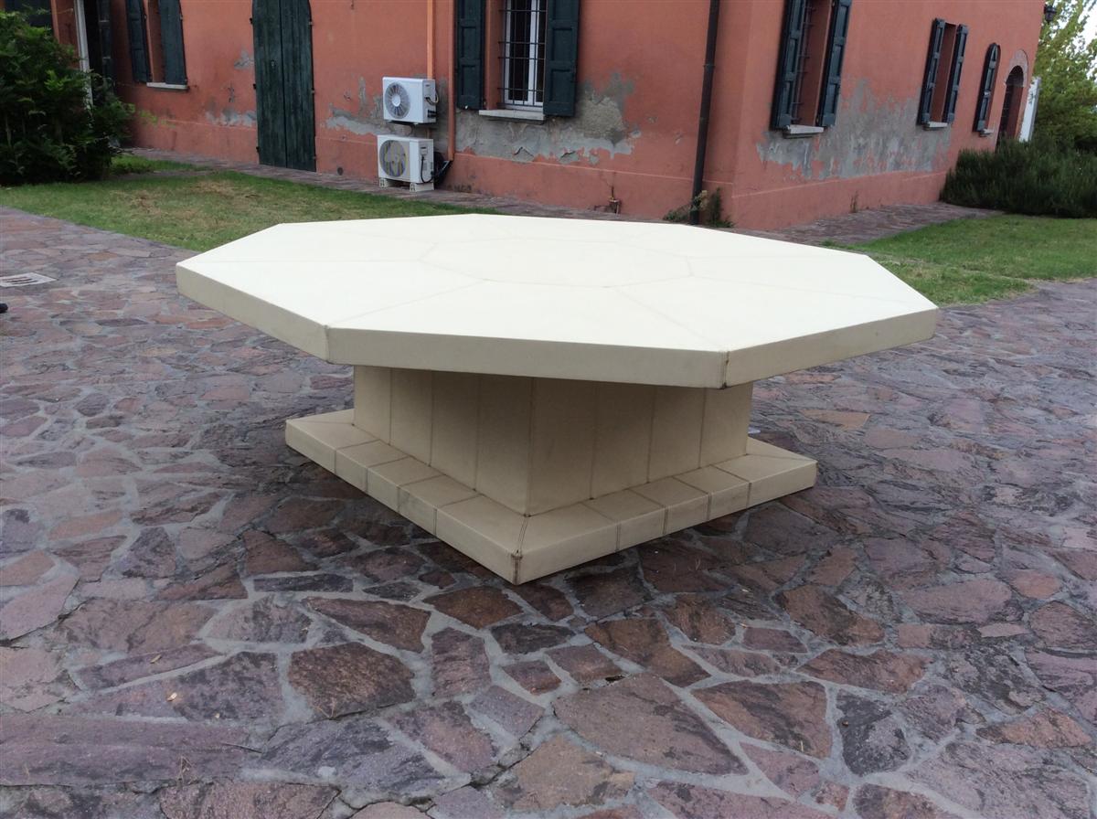 G&H Tatterton Best antique store Tavolo da riunione a forma ottagonale, interamente rivestito in pelle primo fiore bianca, con cuciture a vista.