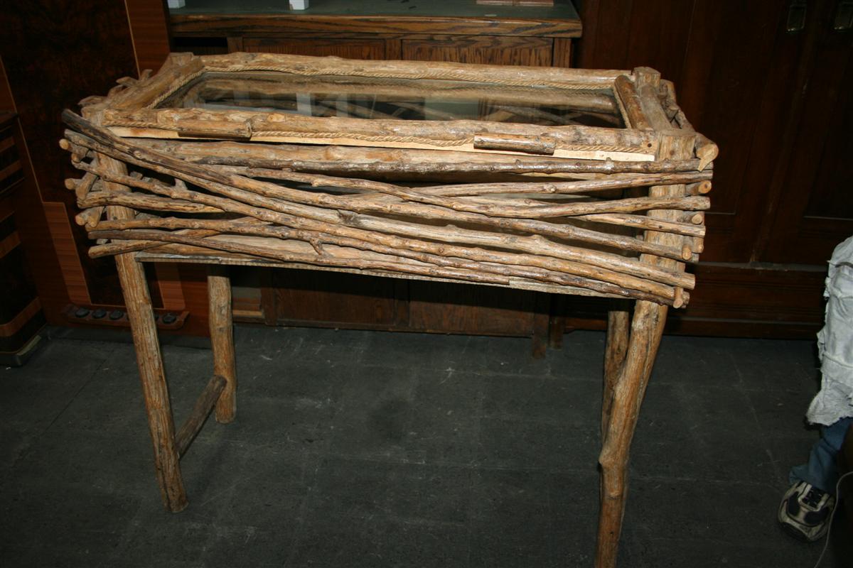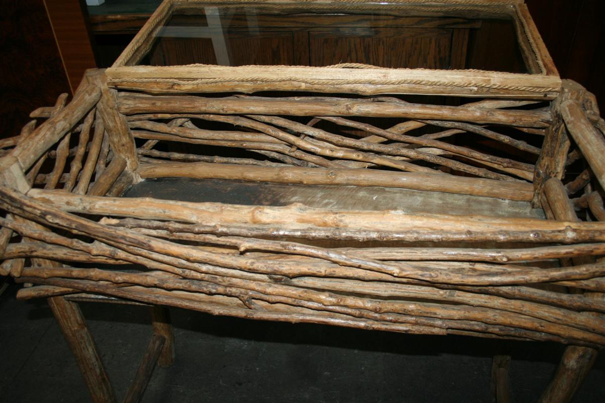 Vetrina espositiva etnica creata con rami di caffè.