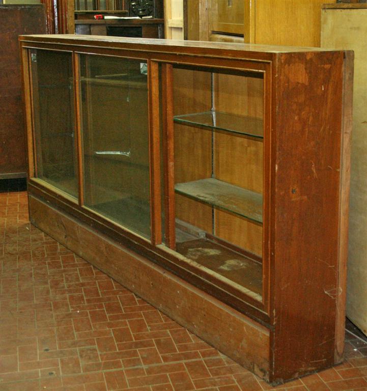 G&H Tatterton Best antique store Vetrina espositiva in faggio ad ante scorrevoli. Con mensole in vetro, è illuminata internamente da neon nascosti.