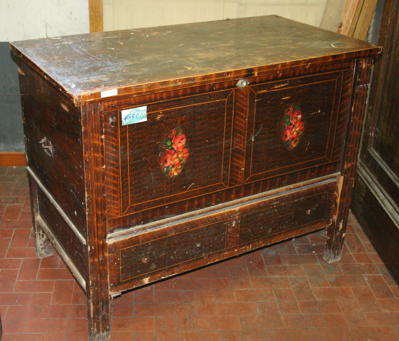 Madia rustica tirolese con cassetto, decorata a mano con disegni floreali