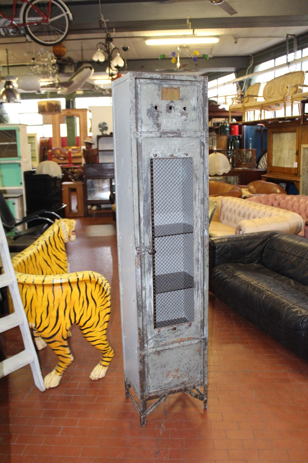 Armadietto da spogliatoio singolo a colonna in ferro, Atelier de Construction Fonderie.