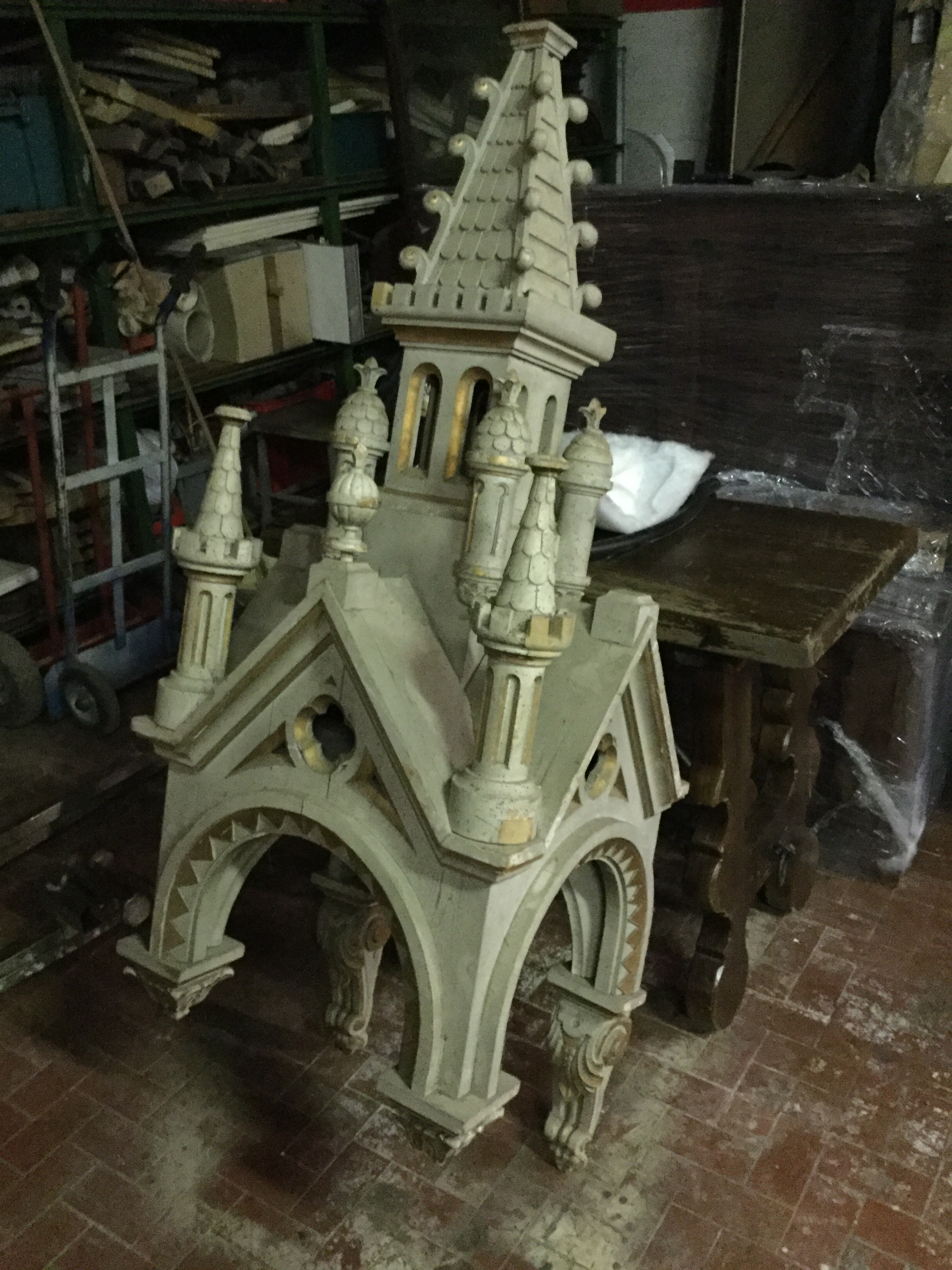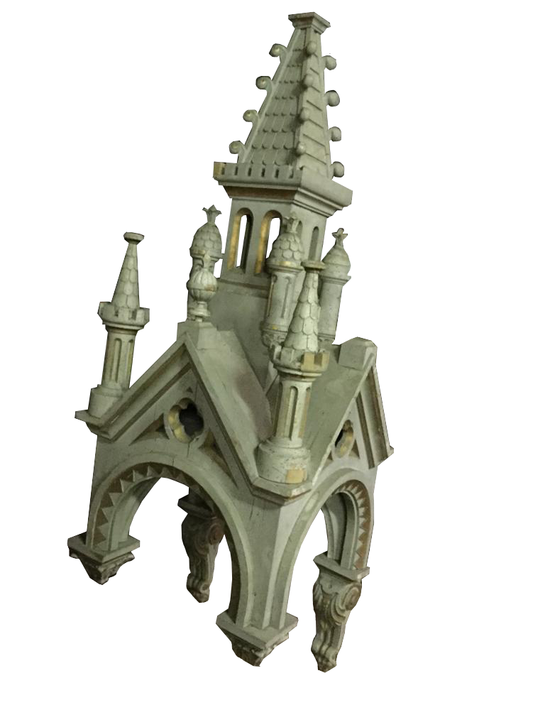 Cimasa da pulpito ortodosso in legno con decori ad intarsio.