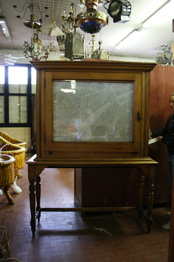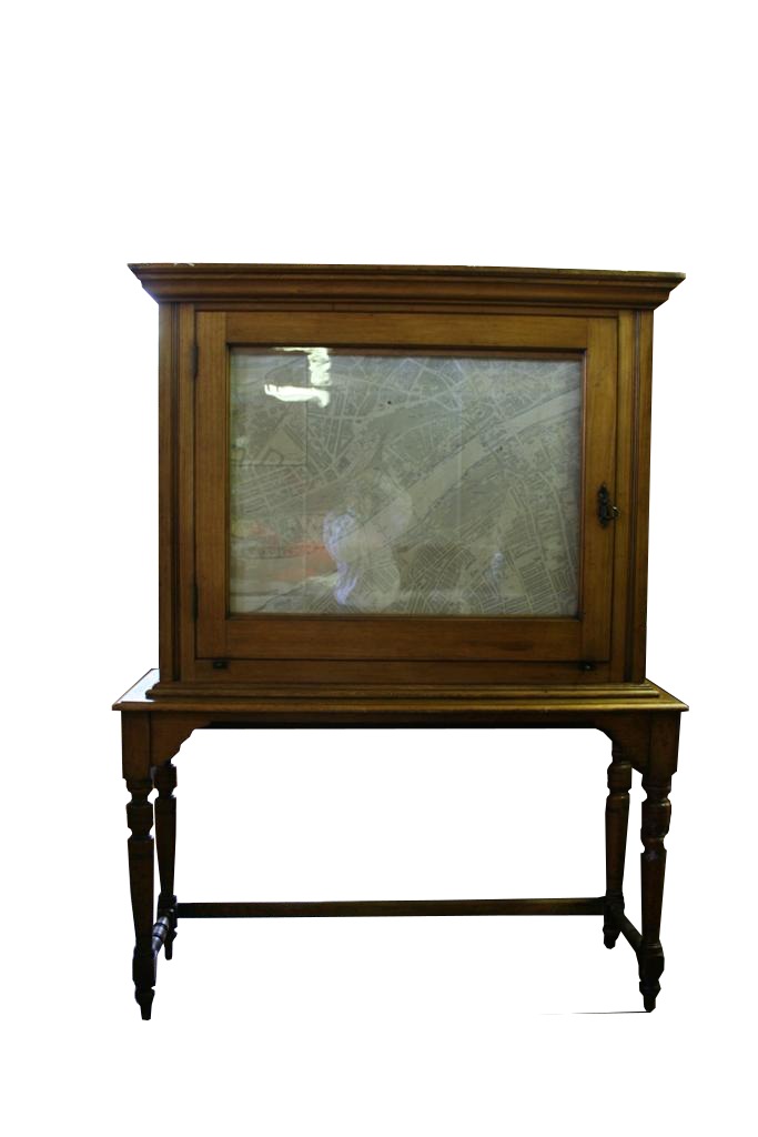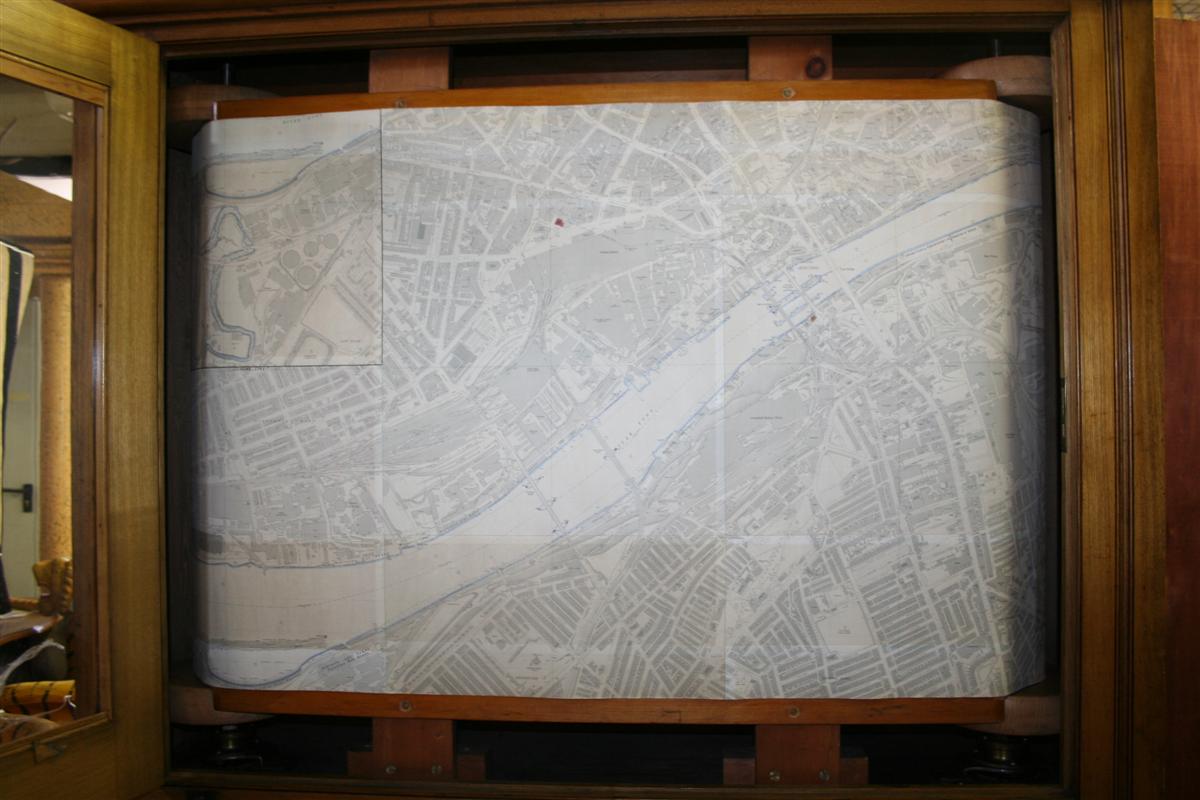 G&H Tatterton Best antique store Espositore topografico militare in rovere con meccanismo a manovella che srotola la mappa.