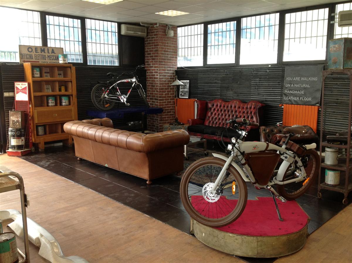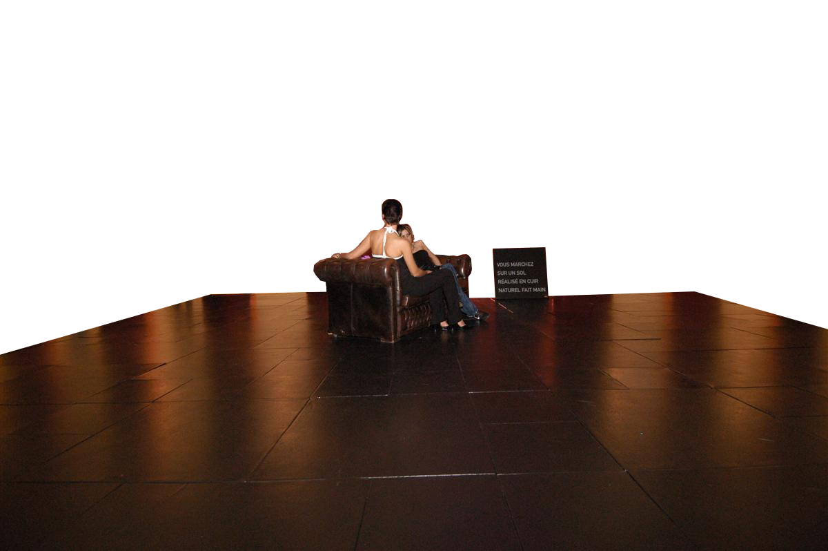 Pavimento in pelle naturale fatto a mano, ideato e prodotto per l'allestimento di Atmosphere a Parigi.
