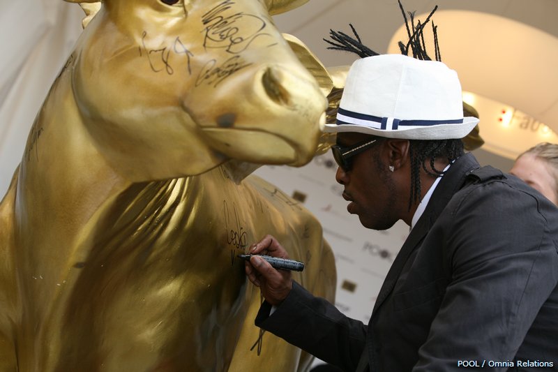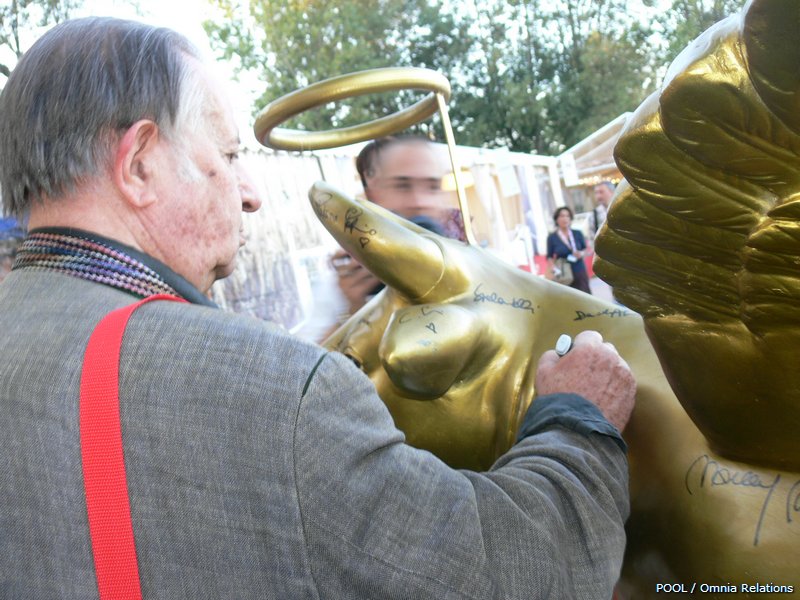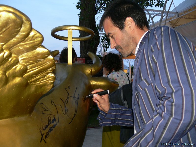 Mucca dorata con ali, messa all'asta durante il 67° Festival del Cinema di Venezia nel 2007 ed autografata da moltissimi artisti invitati alla mannifestazione.