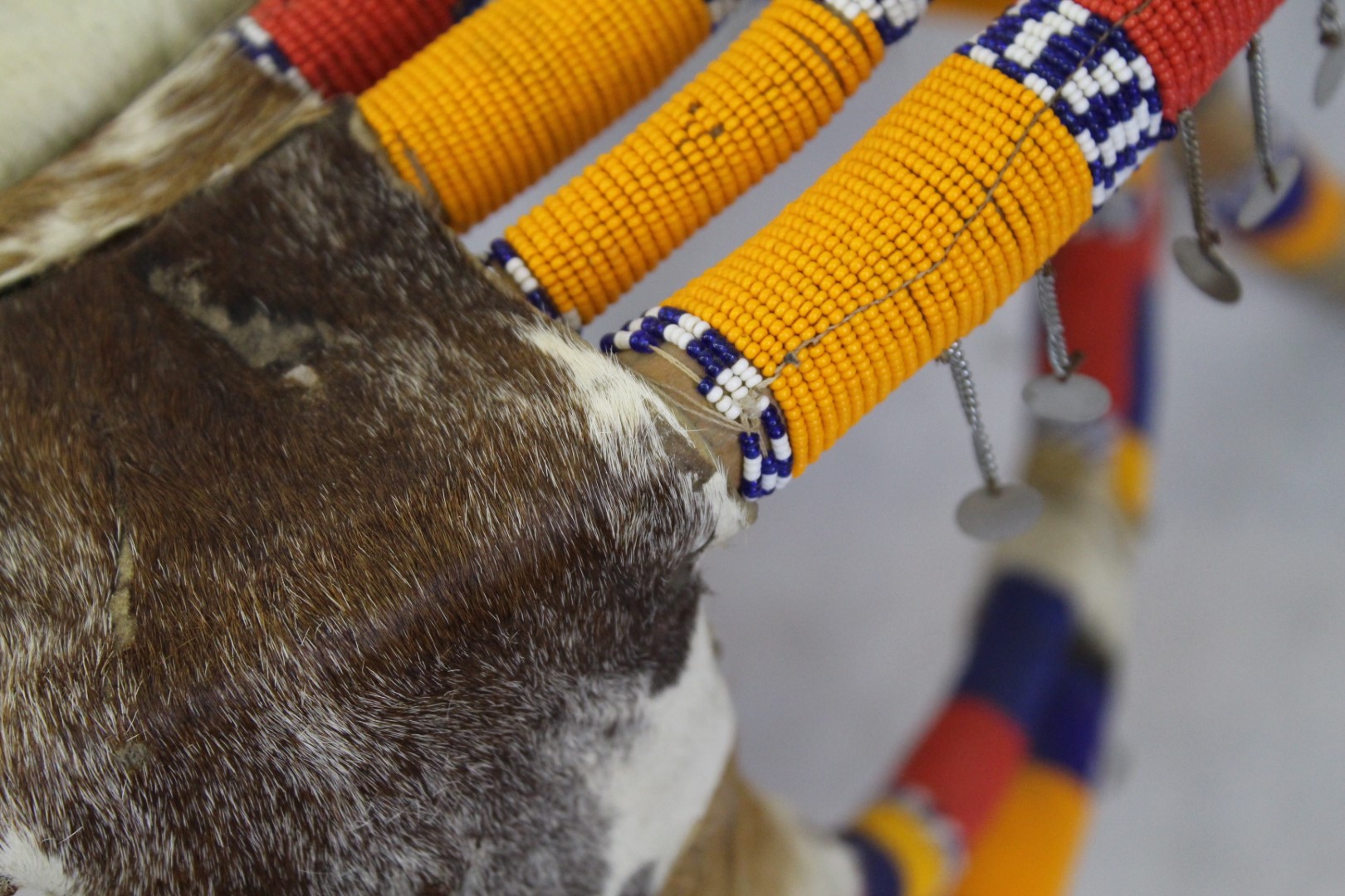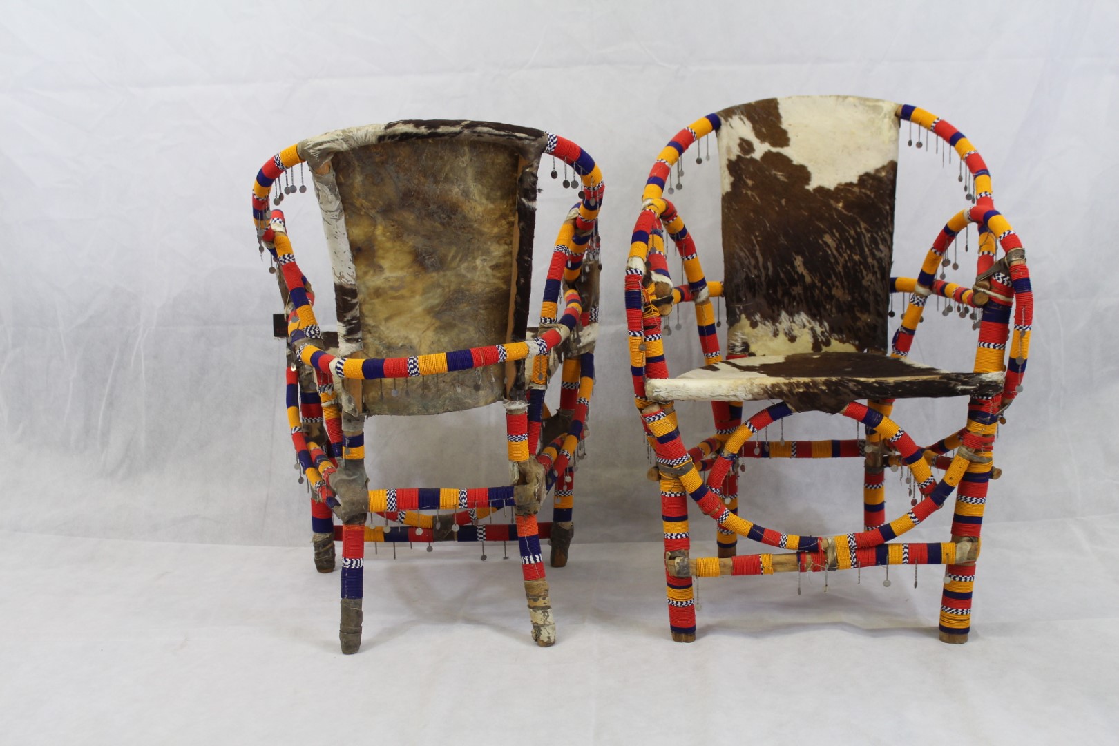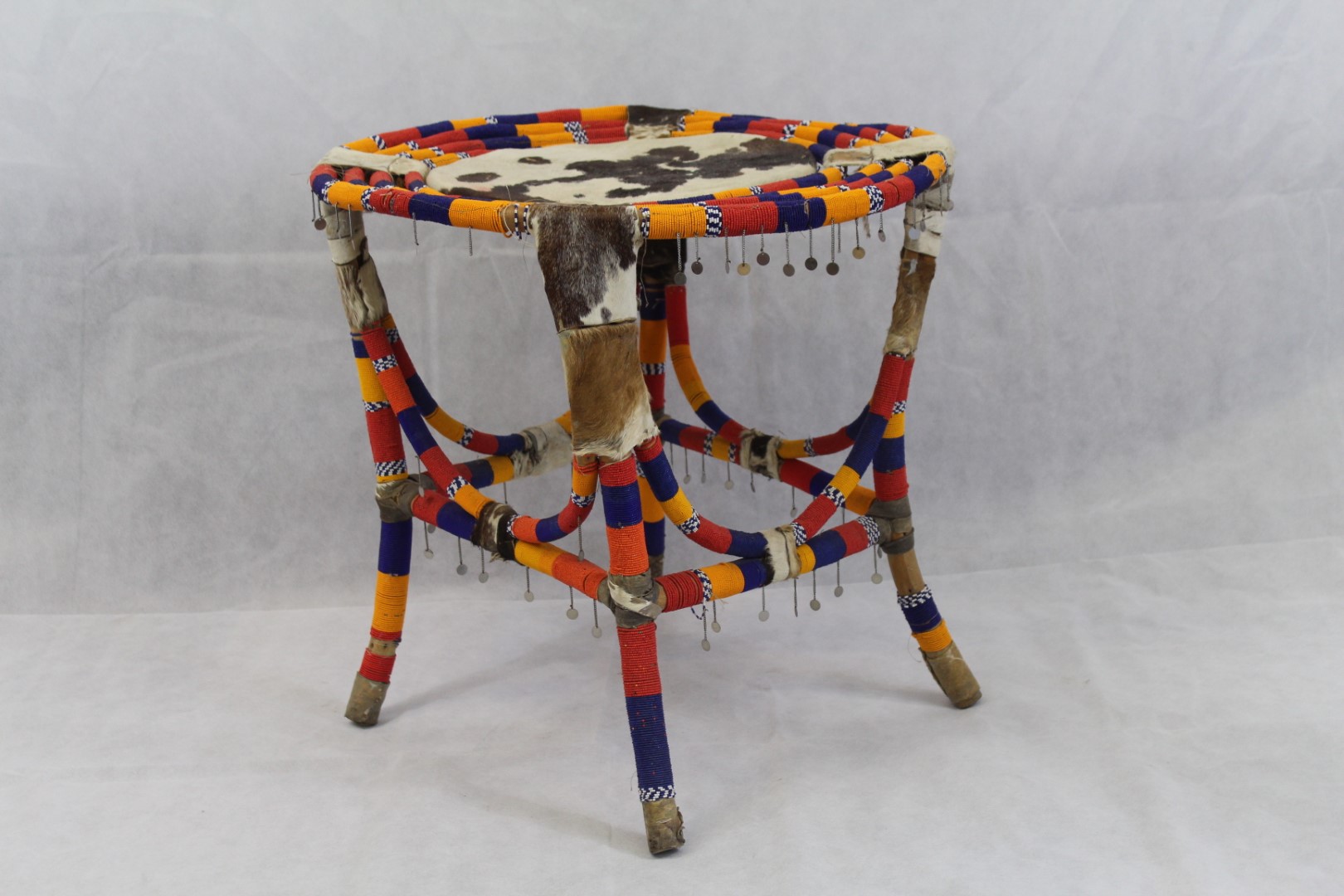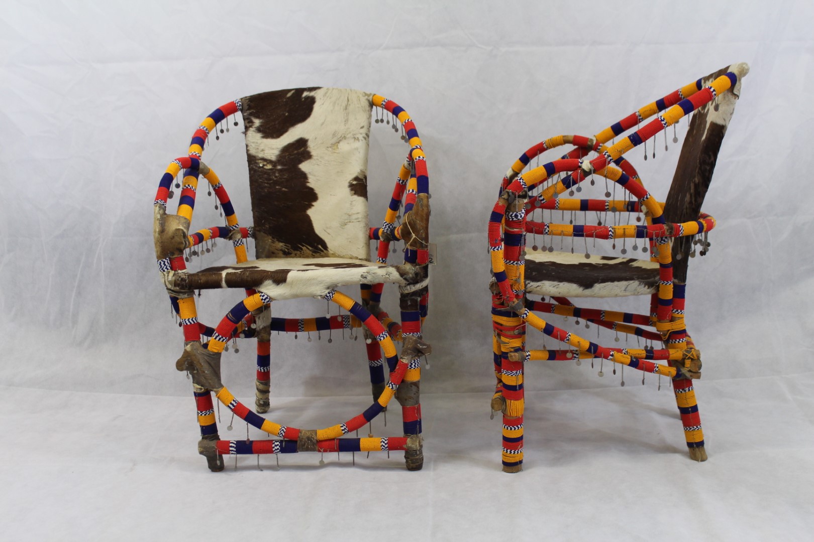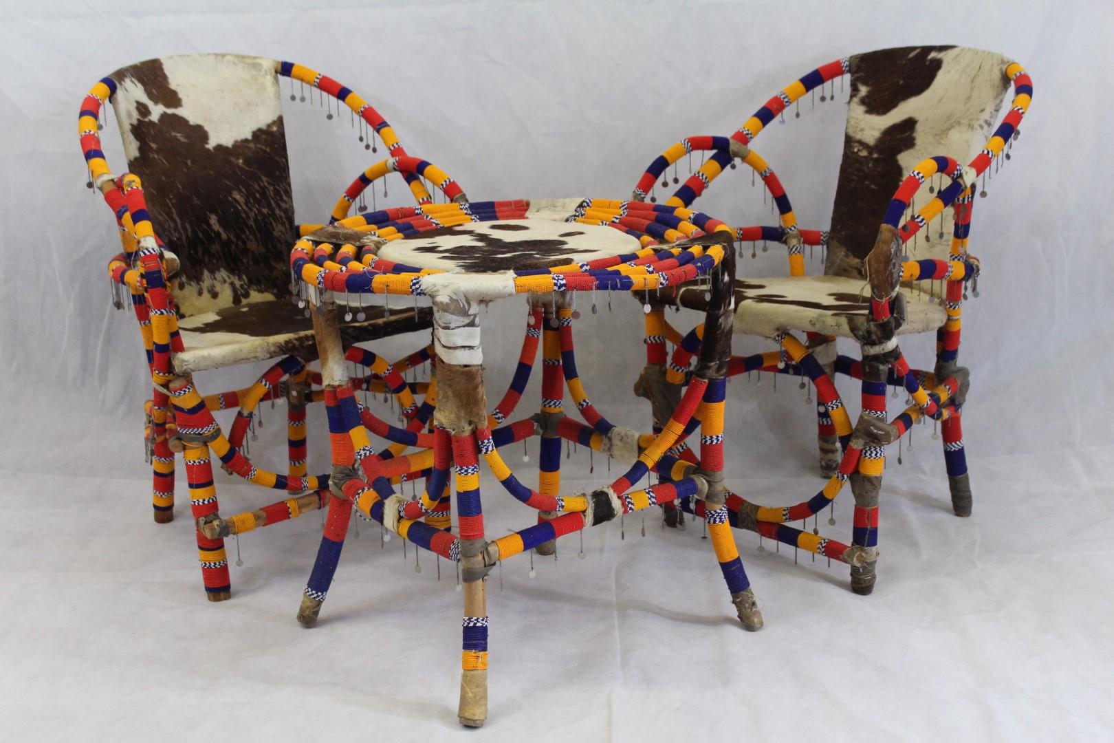 G&H Tatterton Best antique store Salotto etnico africano proveniente dalla Tanzania. Artigianto locale cone struttura in legno con fili di perline colorate intrecciati. Sedute e legature in pelle di capra.