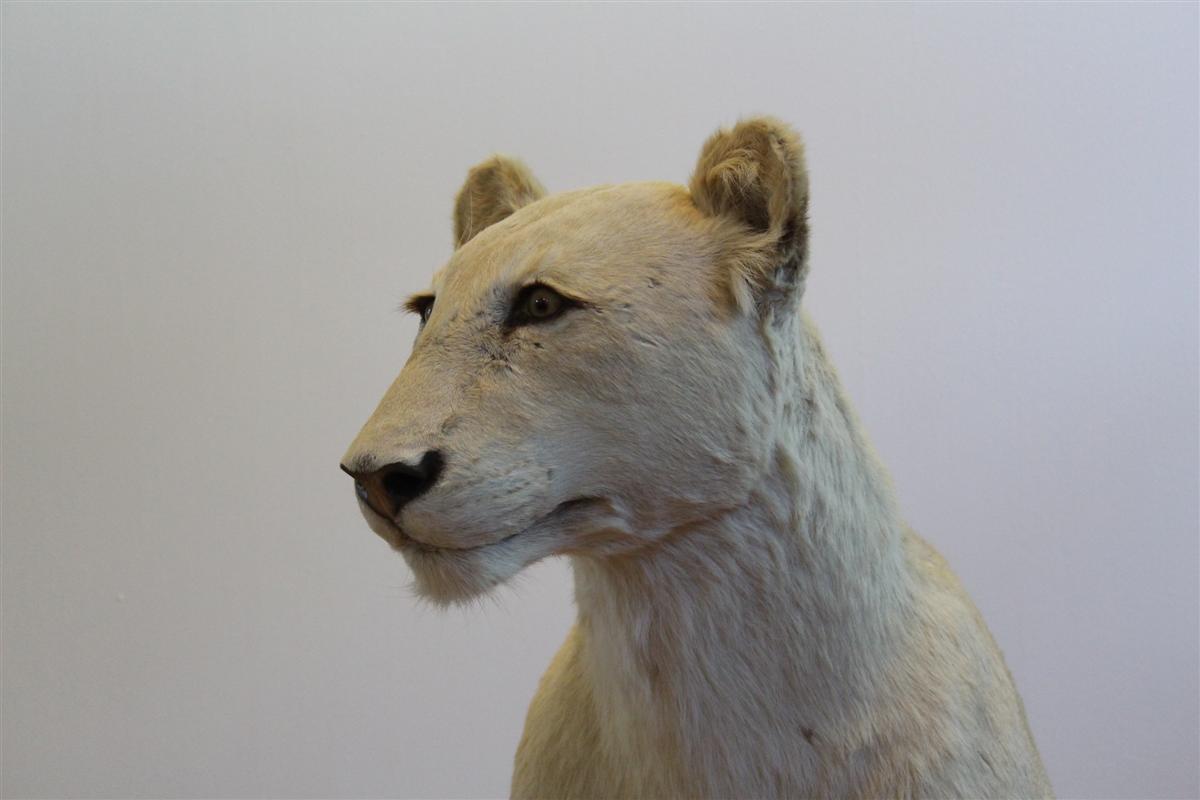 Trofeo coloniale vintage inglese, leonessa seduta. Provenienza UK.