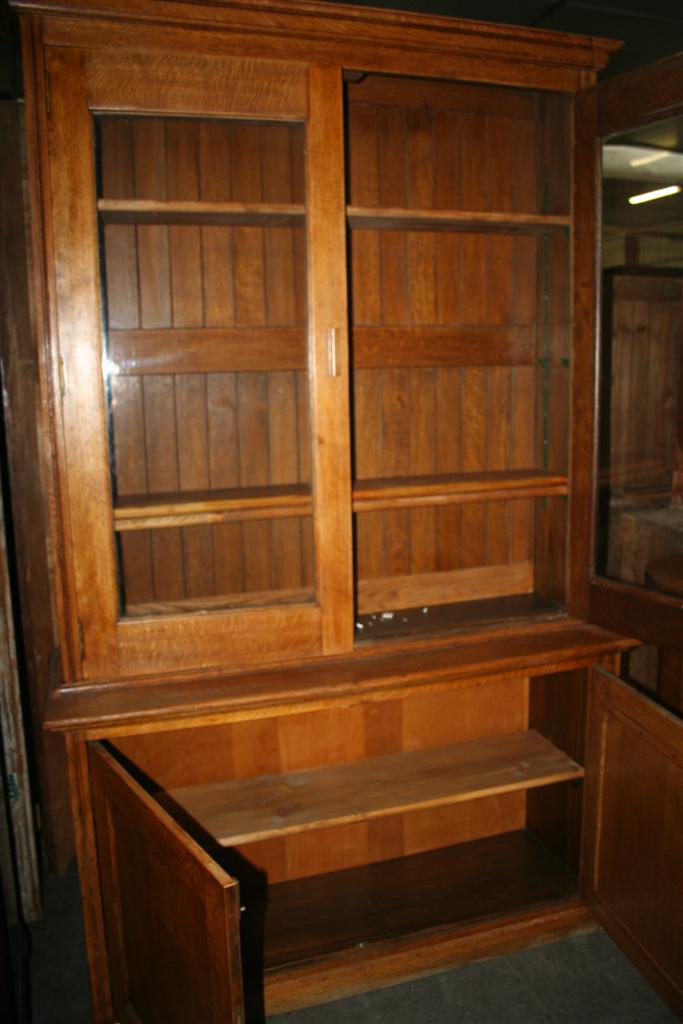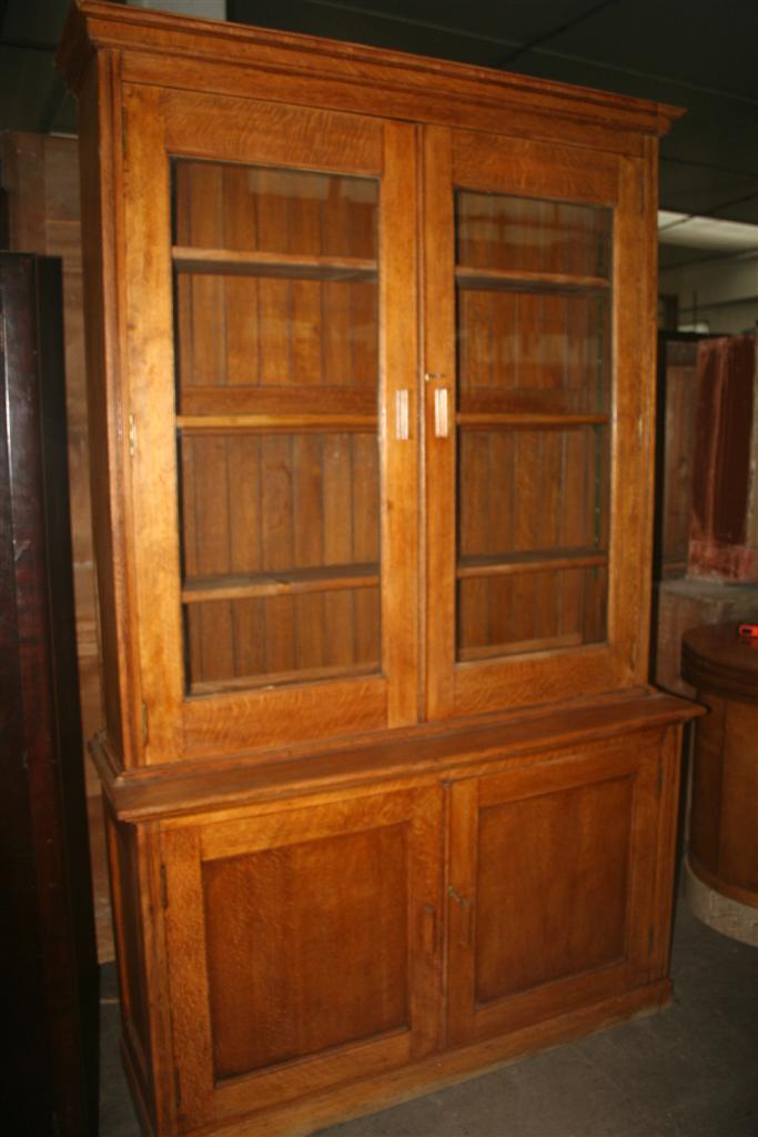 Credenza canadese in due corpi in rovere massello. Ante nella parte bassa e vetrina superiore.