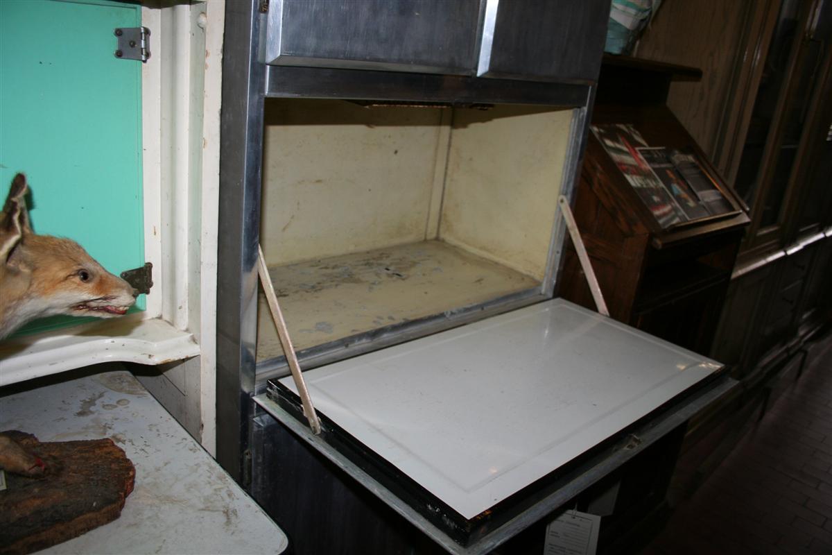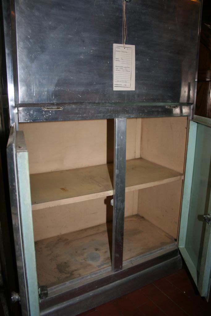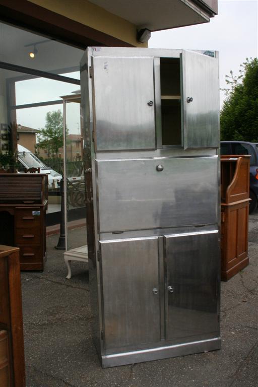 Dinette anni '50 da nave in alluminio, con piano da lavoro smaltato a ribaltina.