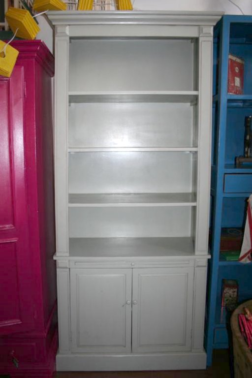 G&H Tatterton Best antique store Credenza in due corpi laccata grigia in stile provenzale, base con ante ed alzata a giorno, dispone inoltre di piano di appoggio estraibile.