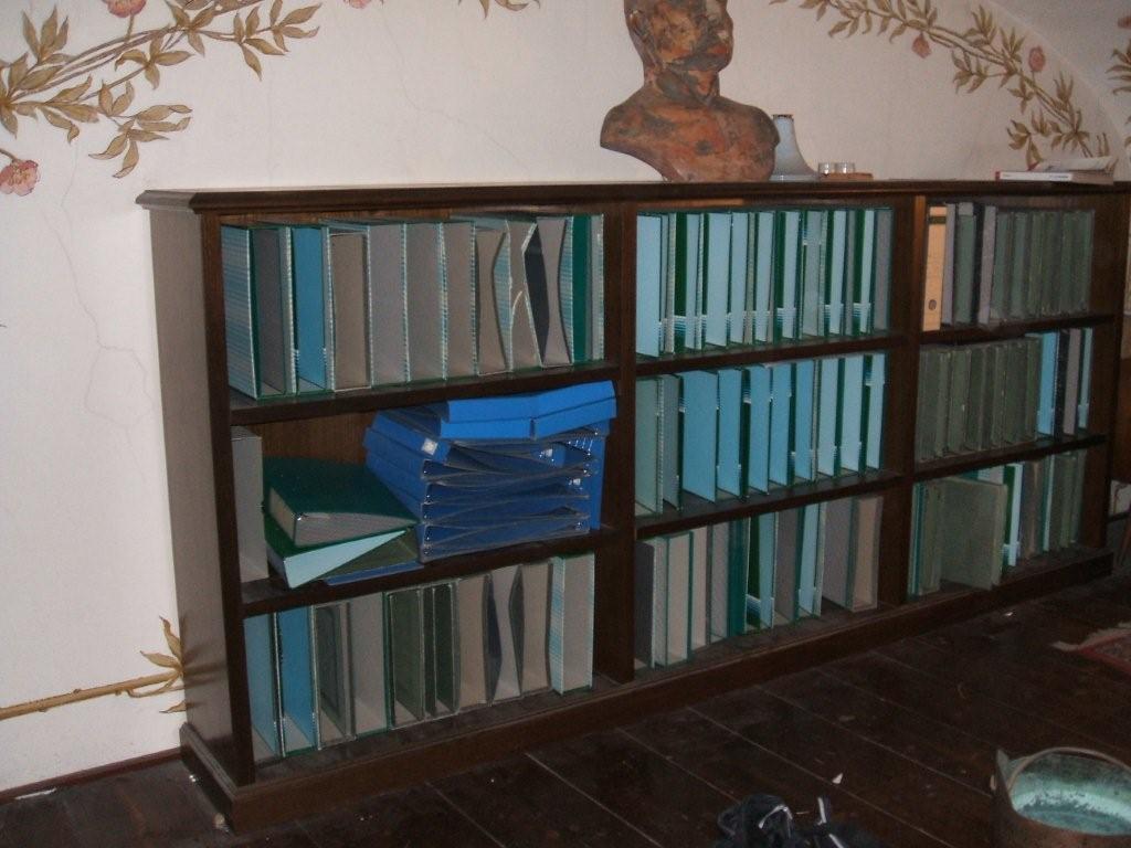 Libreria bassa a giorno in noce.