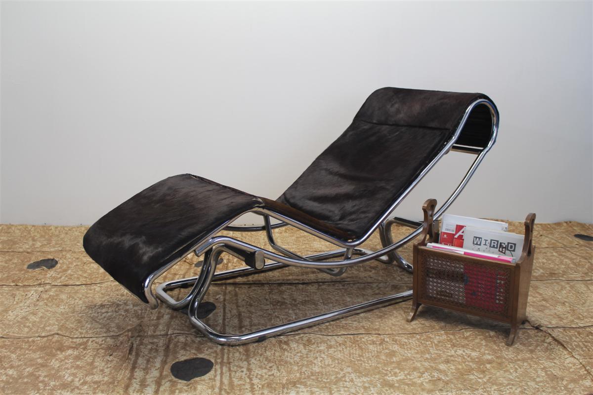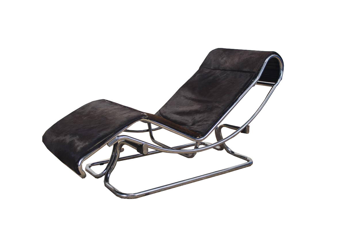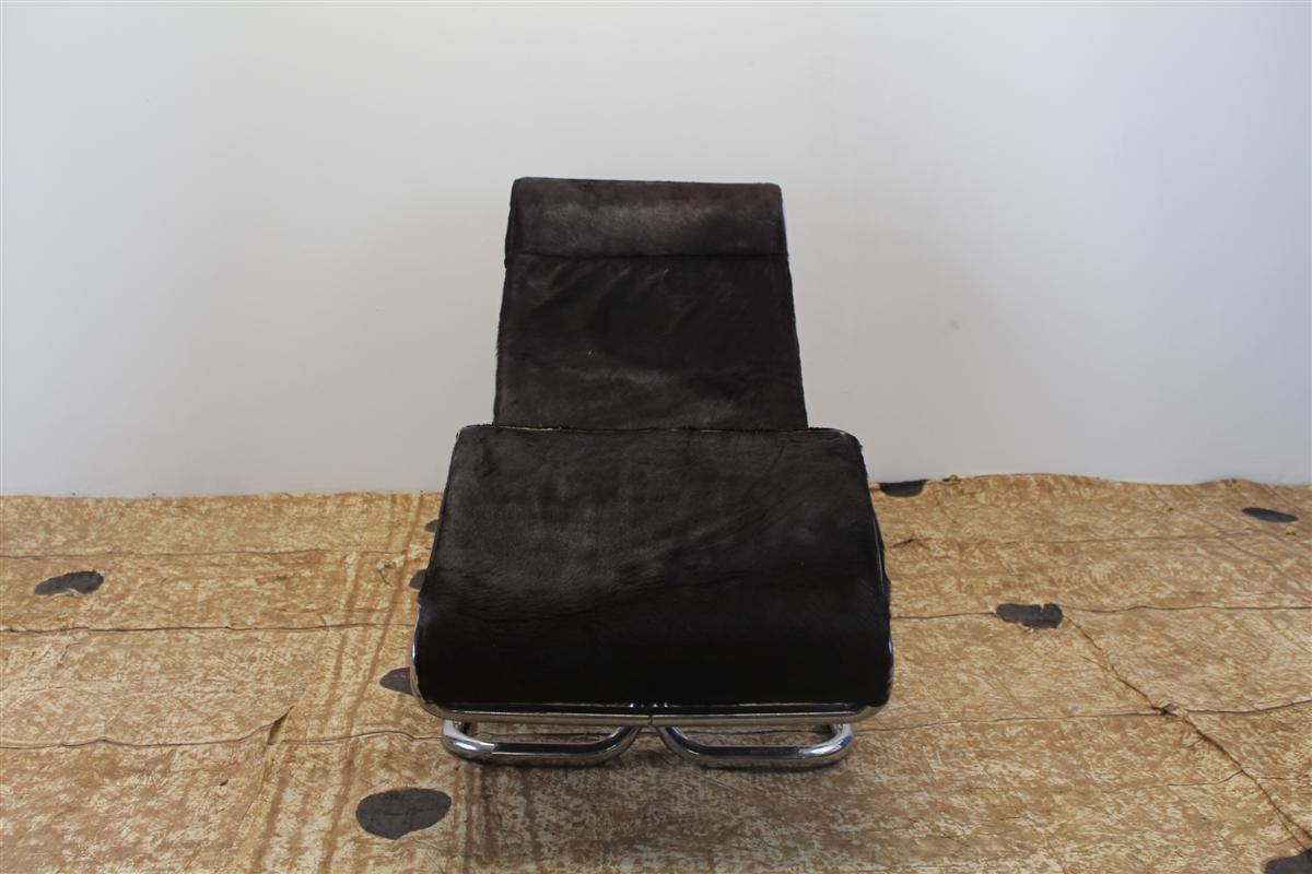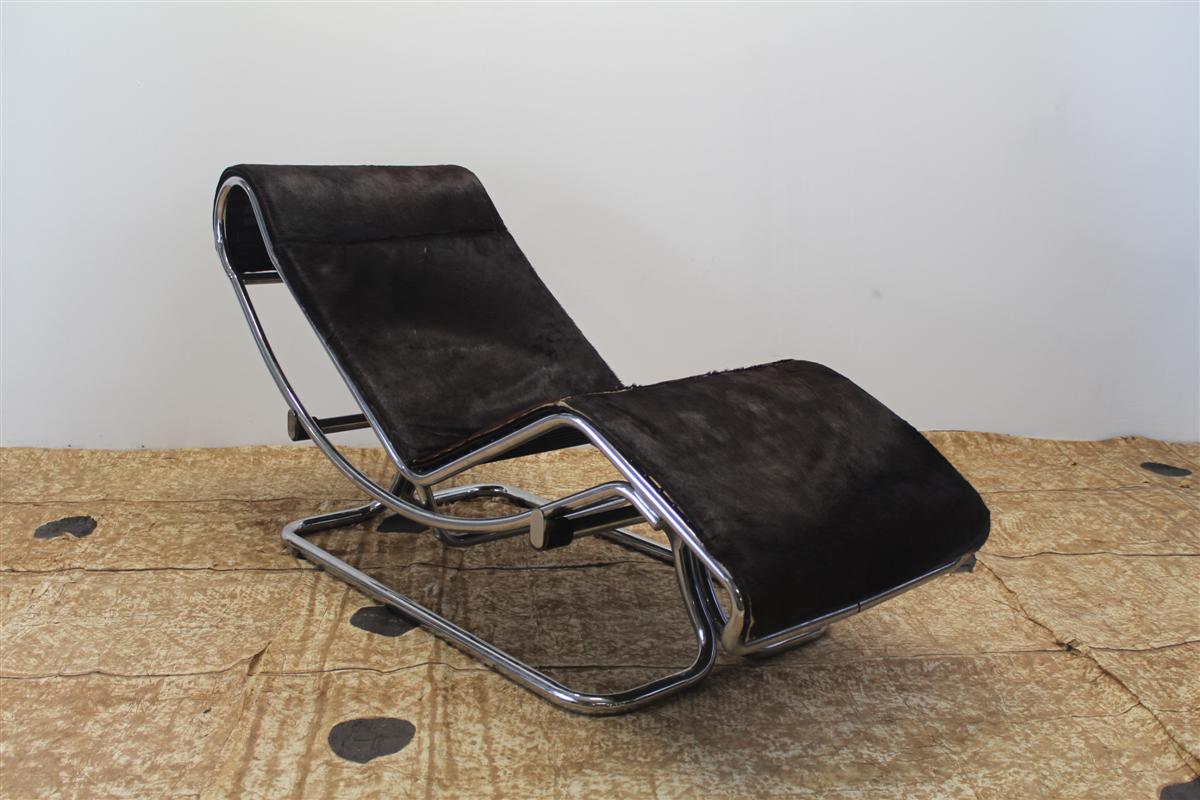 G&H Tatterton Best antique store Chaise longue Guido Faleschini, con rivestimento in cavallino e struttura e base cromate.