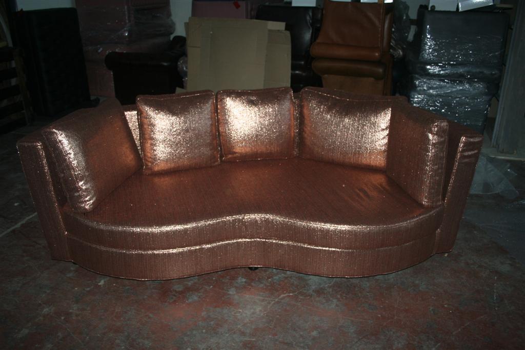 Divano a tre posti, design originale anni'70, foderato in stoffa color bronzo.