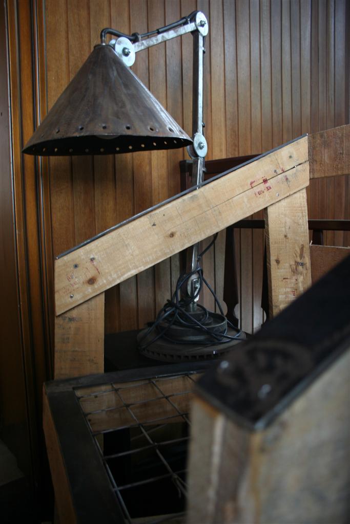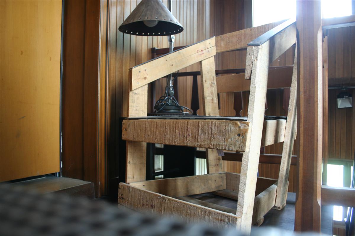Poltrona industrial creata con imballaggio in legno e rete metallica.