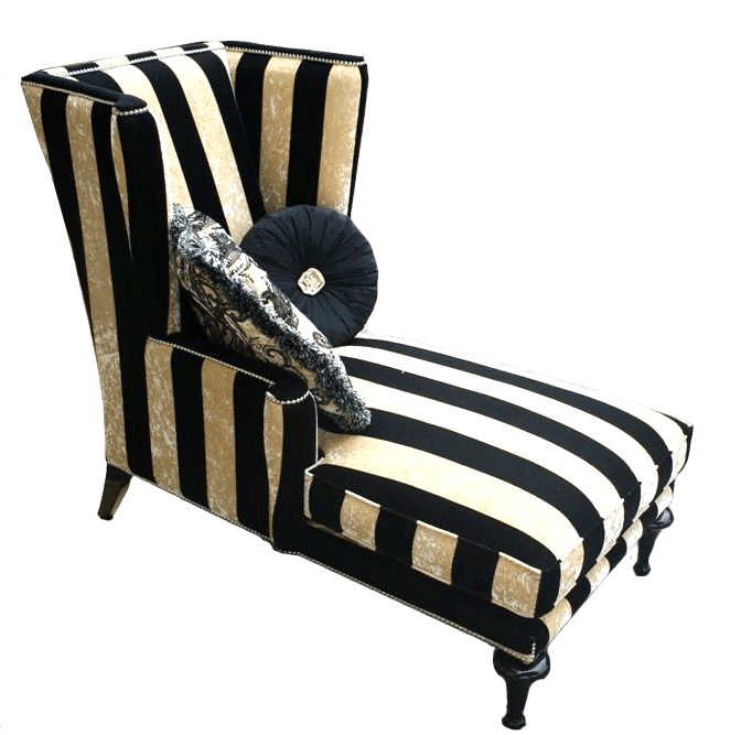 Poltrona chaiselong modello Luxury in velluto a righe bianco e nero.