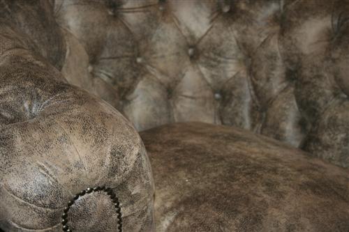 G&H Tatterton Best antique store Poltrona Chesterfield modello London rivestita in ecopelle anticata e decorata con borchie in ottone. Di nuova produzione.