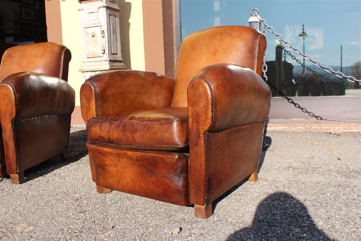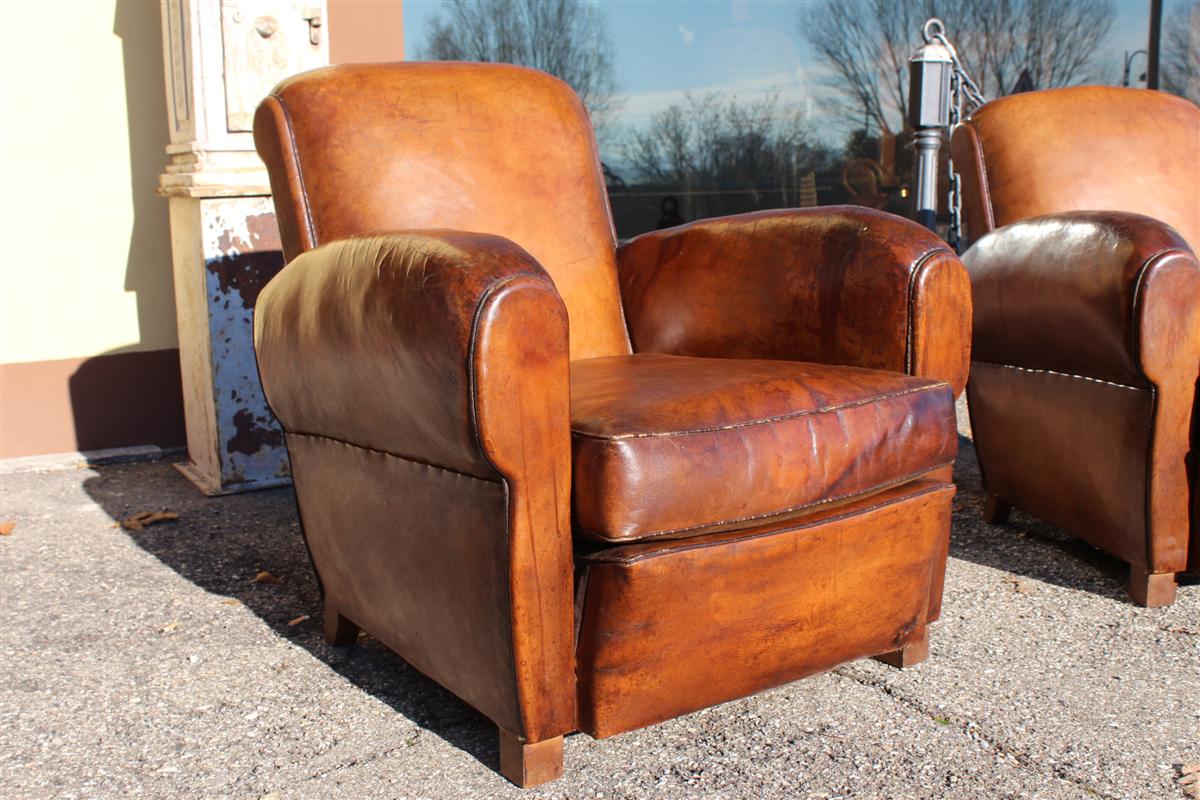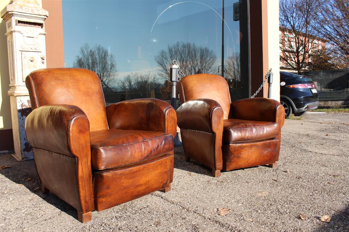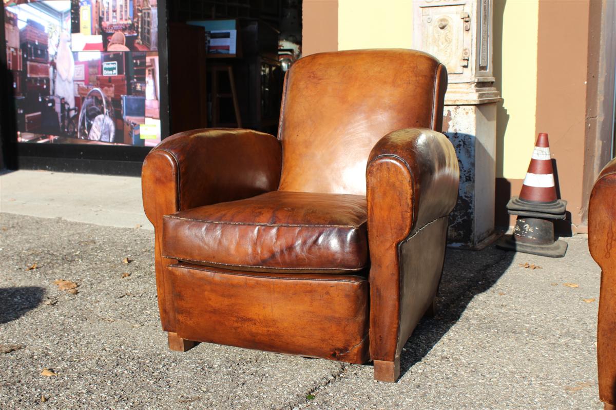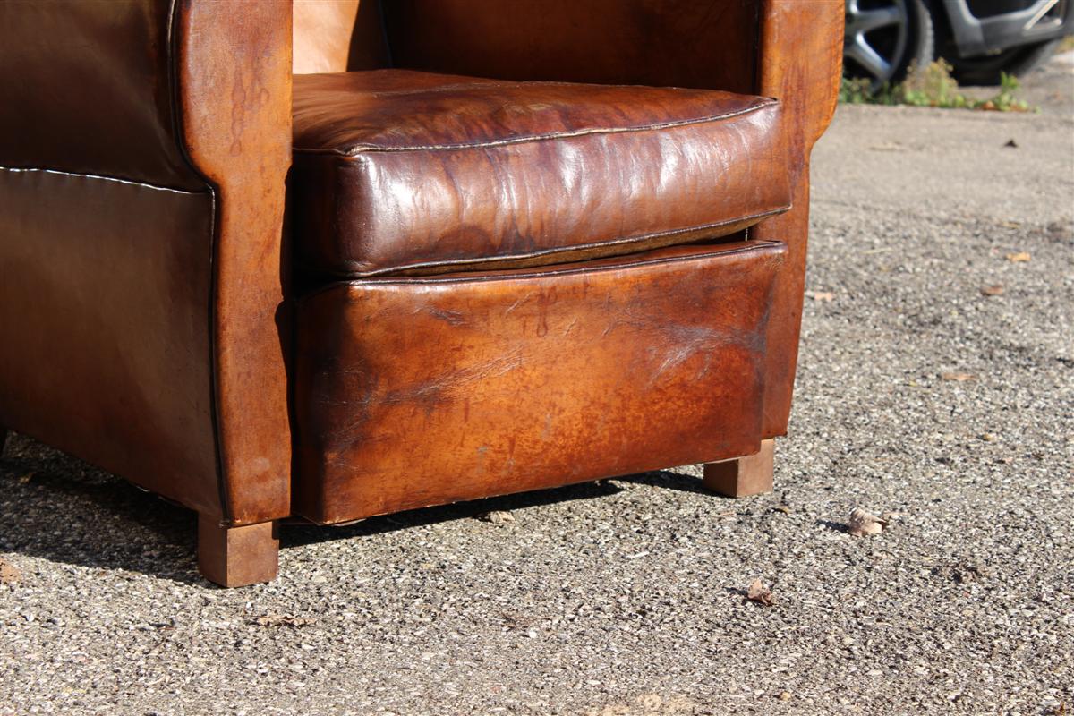 Coppia di poltrone Club vintage in cuoio marrone, belga anni '40.