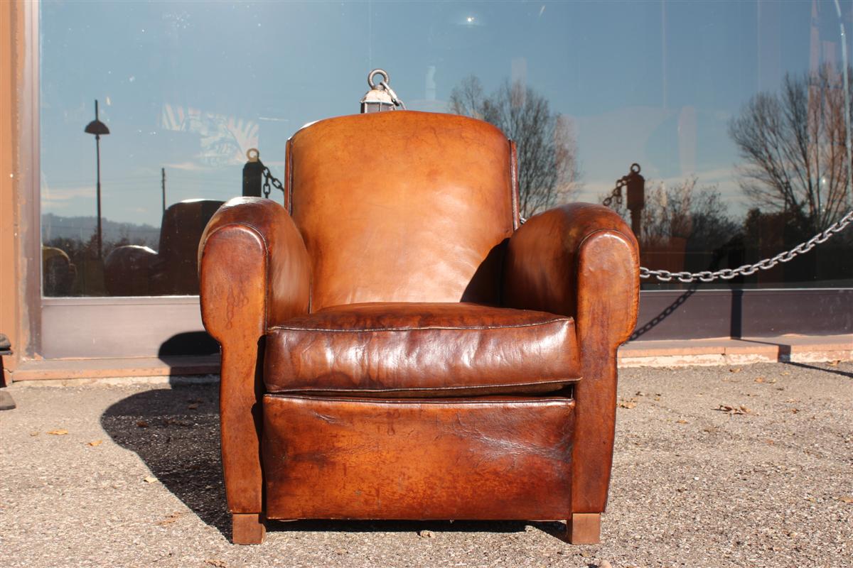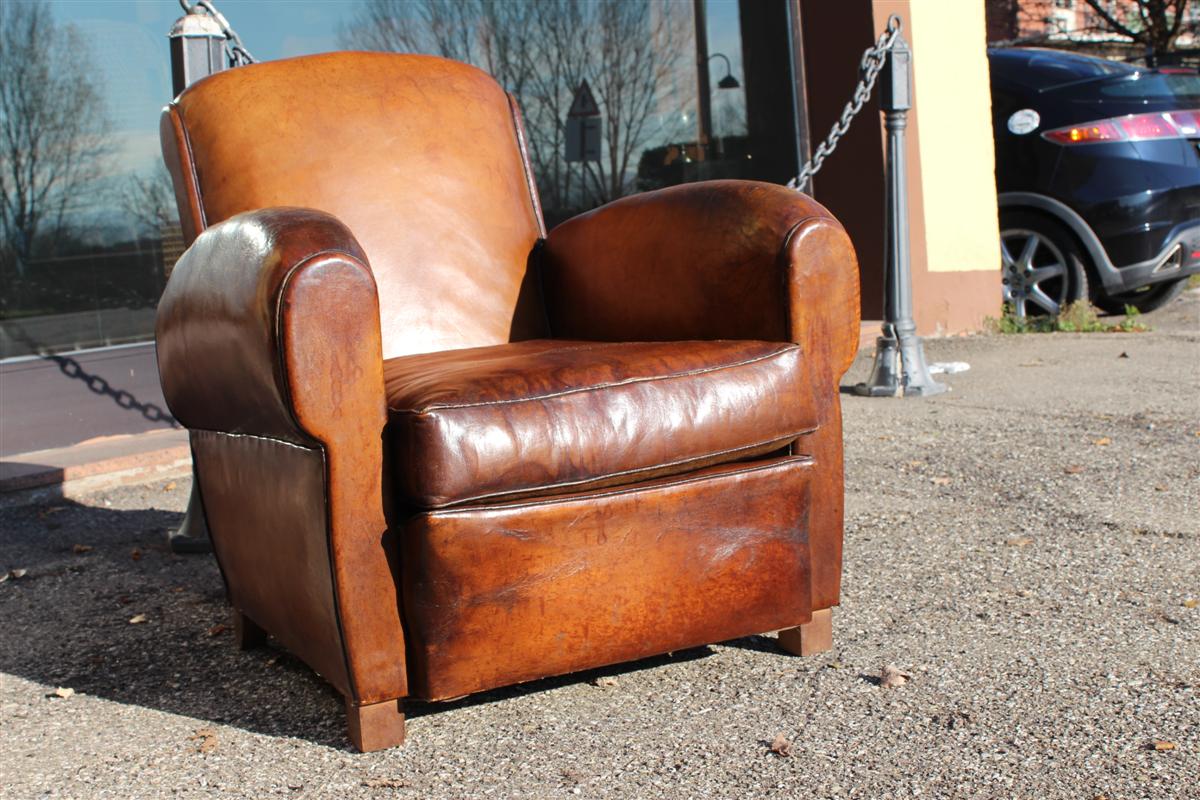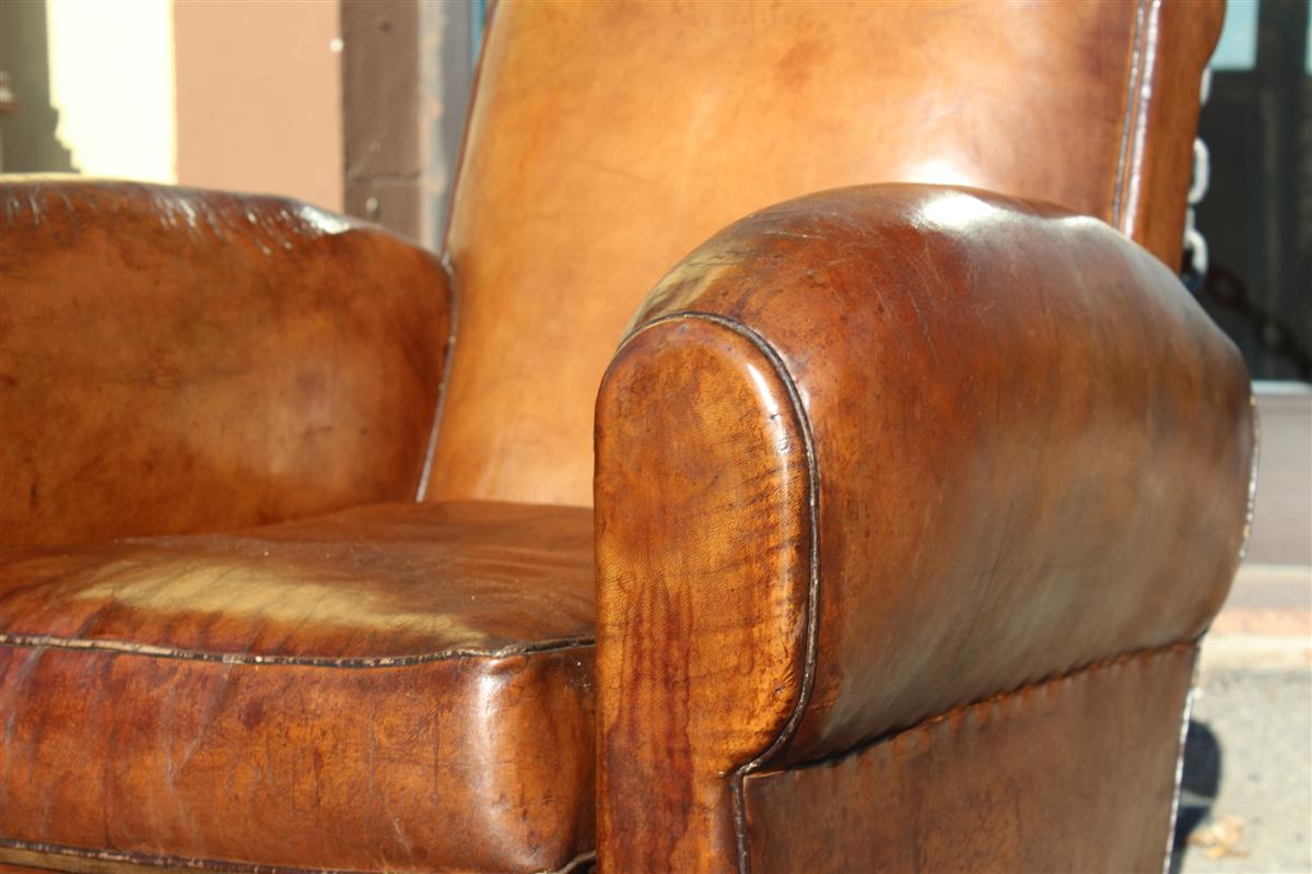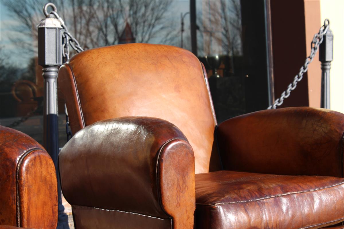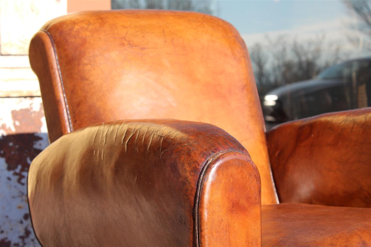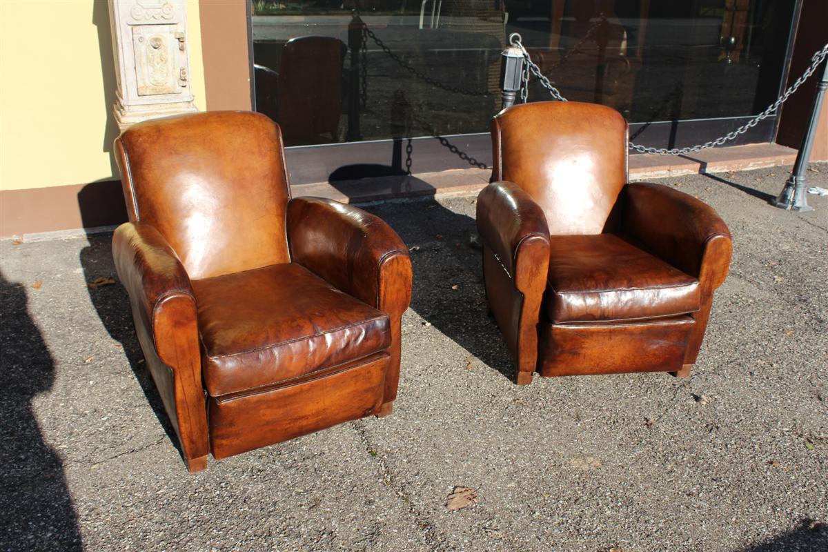 Coppia di poltrone Club vintage in cuoio marrone, belga anni '40.