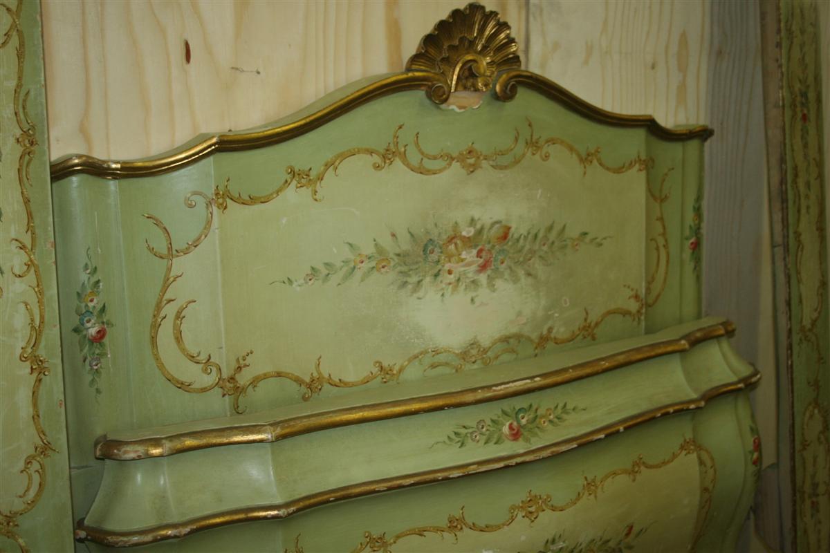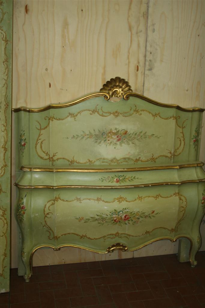 Letto singolo in stile veneziano in legno, decorato a mano.