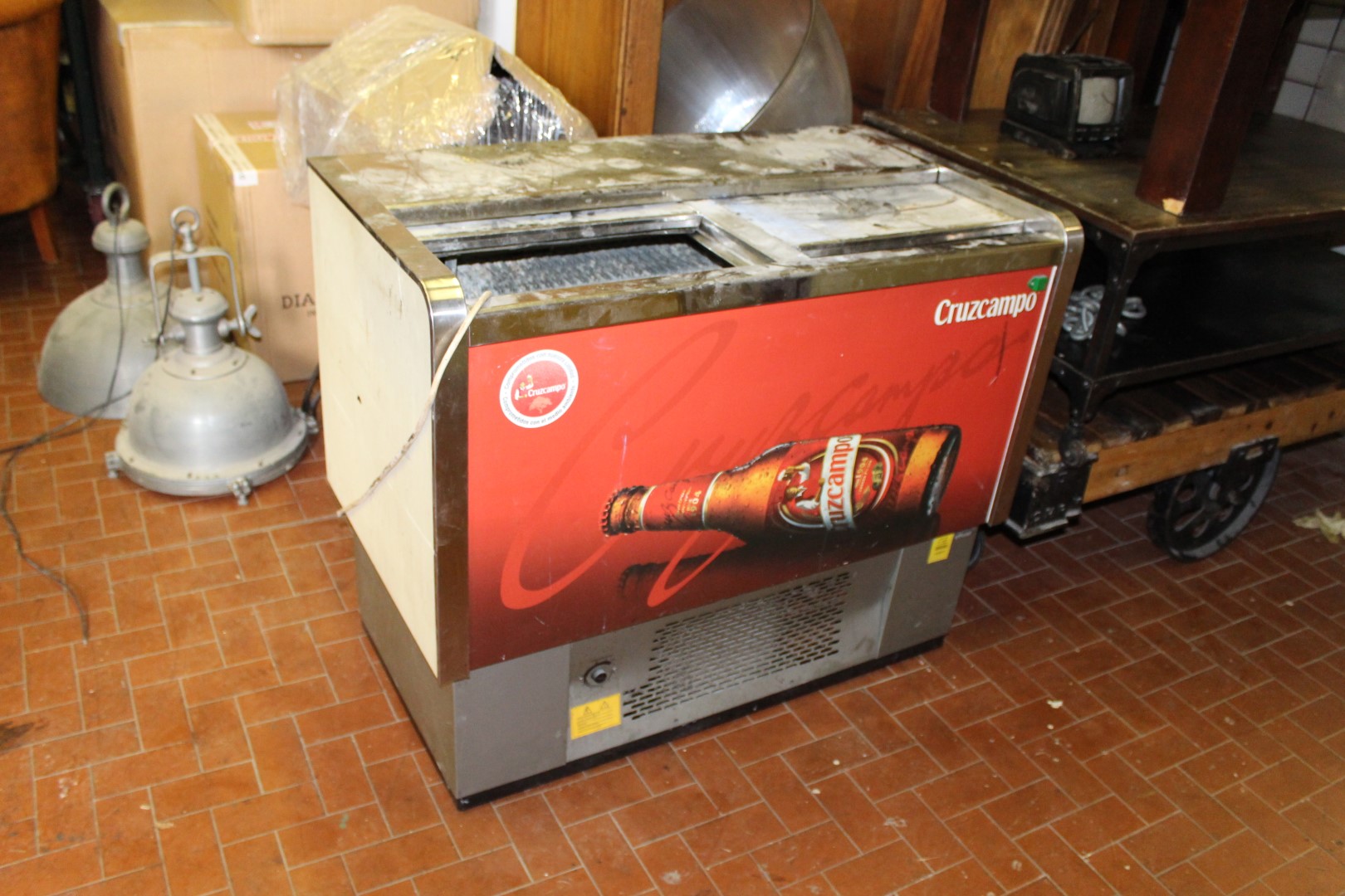 Frigorifero ghiacciaia a pozzetto spagnola, pubblicitaria birra Cruzcampo.